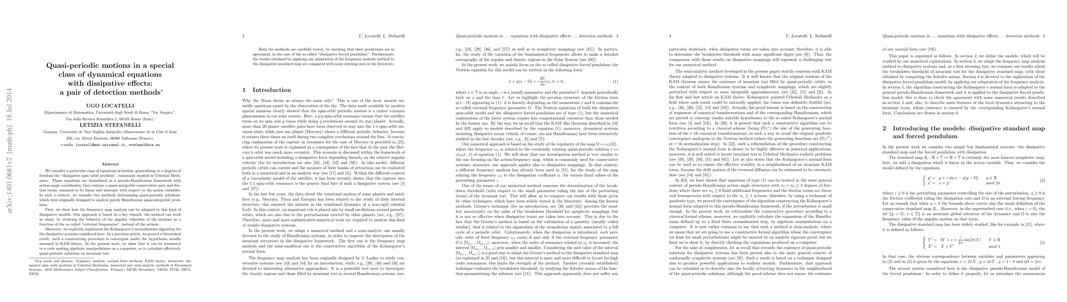 This paper explores quasi-periodic motions in dissipative dynamical systems, generalizing the "dissipative spin-orbit problem" to n degrees of freedom. It adapts two detection methods for quasi-periodic solutions, including frequency map analysis and Kolmogorov's normalization algorithm, and demonstrates their effectiveness through computational implementation and comparison with existing results for the dissipative forced pendulum and standard map.
