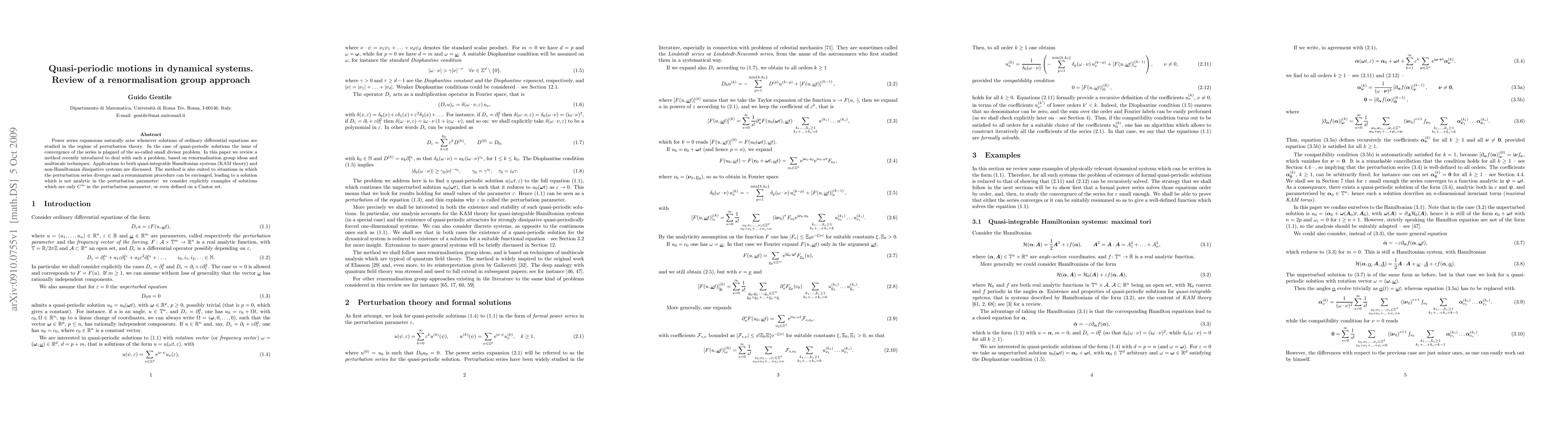 Power series expansions naturally arise whenever solutions of ordinary differential equations are studied in the regime of perturbation theory. In the case of quasi-periodic solutions the issue of convergence of the series is plagued of the so-called small divisor problem. In this paper we review a method recently introduced to deal with such a problem, based on renormalisation group ideas and multiscale techniques. Applications to both quasi-integrable Hamiltonian systems (KAM theory) and non-Hamiltonian dissipative systems are discussed. The method is also suited to situations in which the perturbation series diverges and a resummation procedure can be envisaged, leading to a solution which is not analytic in the perturbation parameter: we consider explicitly examples of solutions which are only infinitely differentiable in the perturbation parameter, or even defined on a Cantor set.