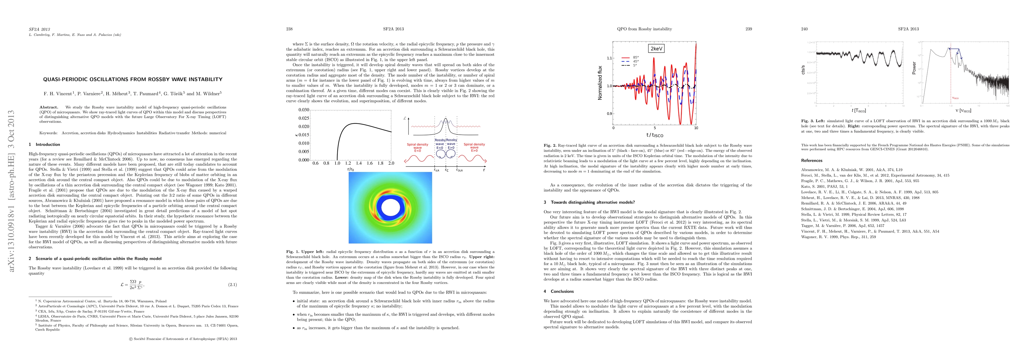 This paper investigates the Rossby wave instability model to explain high-frequency quasi-periodic oscillations (QPO) in microquasars, presenting ray-traced light curves and discussing how future observations from LOFT could help distinguish this model from alternatives.