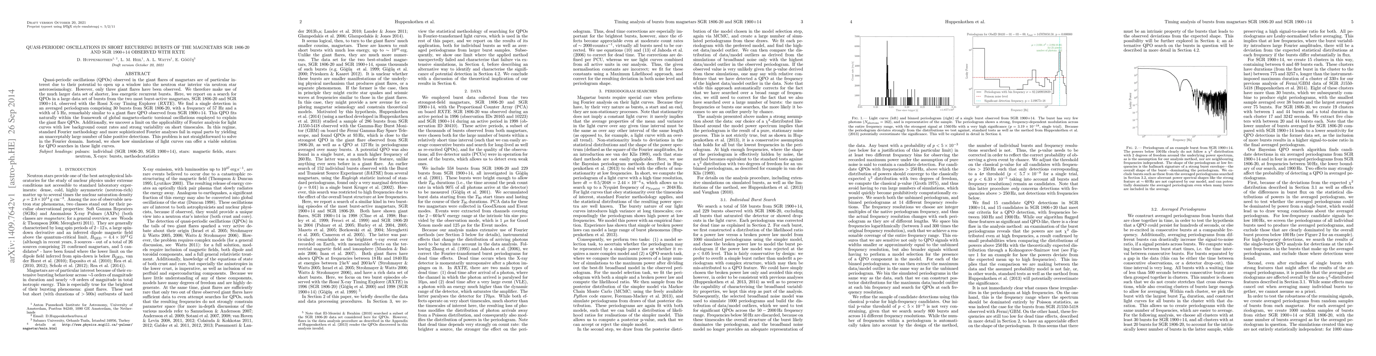 Quasi-periodic oscillations (QPOs) observed in the giant flares of magnetars are of particular interest due to their potential to open up a window into the neutron star interior via neutron star asteroseismology. However, only three giant flares have been observed. We therefore make use of the much larger data set of shorter, less energetic recurrent bursts. Here, we report on a search for QPOs in a large data set of bursts from the two most burst-active magnetars, SGR 1806-20 and SGR 1900+14, observed with the Rossi X-ray Timing Explorer (RXTE). We find a single detection in an averaged periodogram comprising 30 bursts from SGR 1806-20, with a frequency of 57 Hz and a width of 5 Hz, remarkably similar to a giant flare QPO observed from SGR 1900+14. This QPO fits naturally within the framework of global magneto-elastic torsional oscillations employed to explain the giant flare QPOs. Additionally, we uncover a limit on the applicability of Fourier analysis for light curves with low background count rates and strong variability on short timescales. In this regime, standard Fourier methodology and more sophisticated Fourier analyses fail in equal parts by yielding an unacceptably large number of false positive detections. This problem is not straightforward to solve in the Fourier domain. Instead, we show how simulations of light curves can offer a viable solution for QPO searches in these light curves.