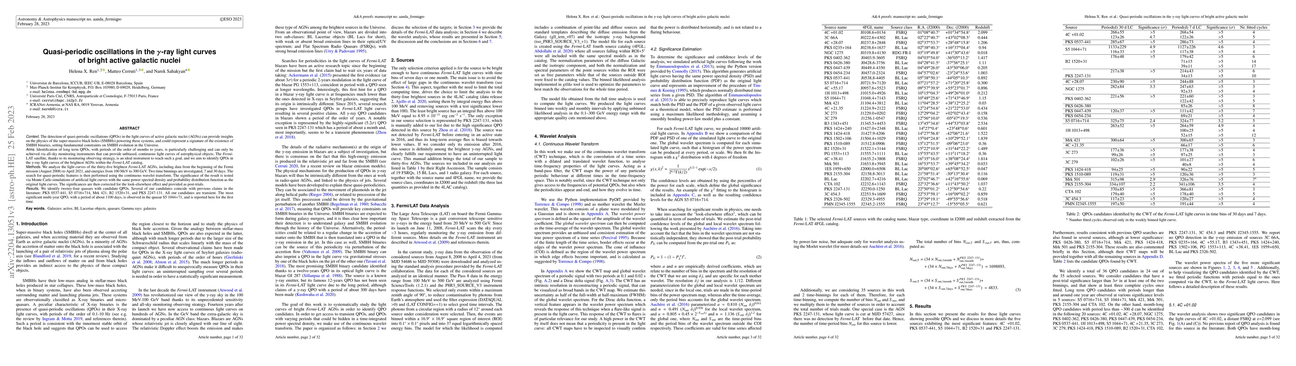 This study identifies quasi-periodic oscillations (QPOs) in the gamma-ray light curves of the brightest active galactic nuclei (AGNs) using Fermi-LAT data, revealing 24 quasars with candidate QPOs, including the first reported multi-year QPO in S5 1044+71. The findings provide insights into the physics of supermassive black holes and potential signatures of SMBH binaries.