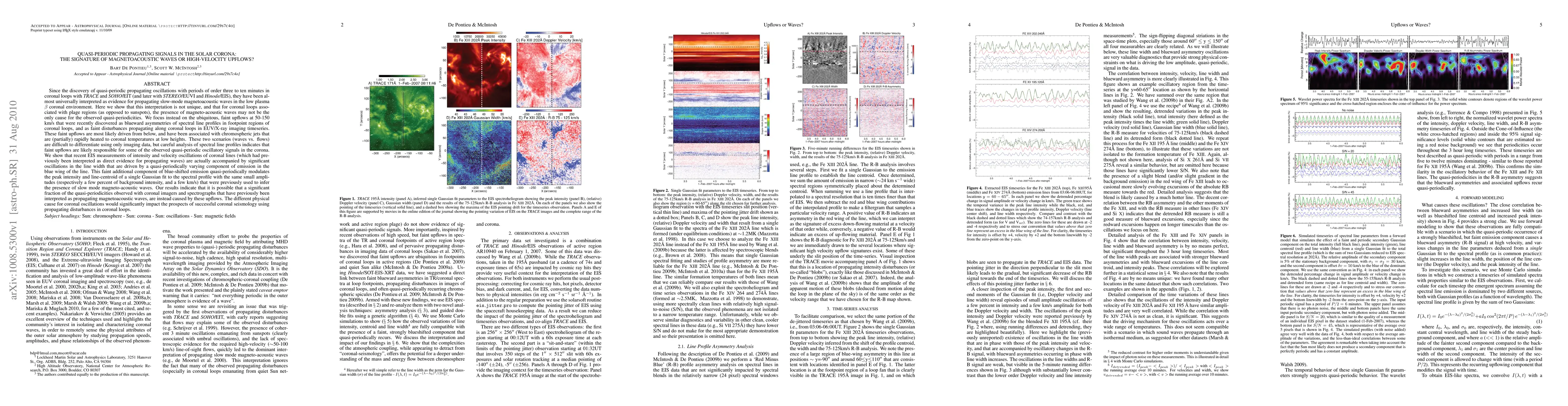 This paper challenges the conventional interpretation of quasi-periodic propagating signals in the solar corona as slow-mode magnetoacoustic waves, suggesting instead that they may be due to high-velocity upflows. Spectral analysis indicates that these upflows, causing blue asymmetries in spectral lines, are responsible for some observed oscillations, impacting the field of coronal seismology.