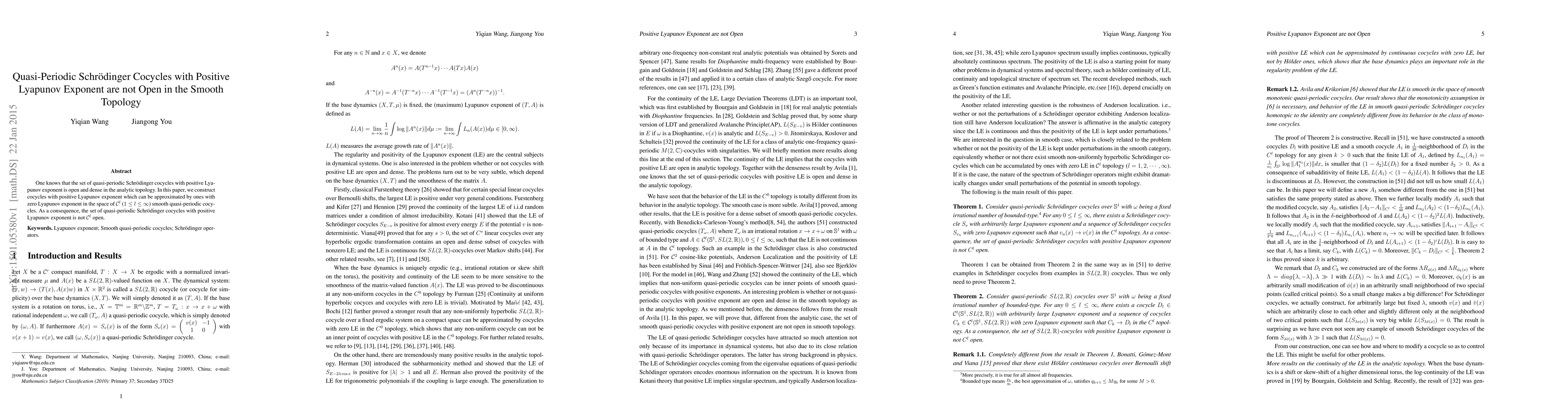 One knows that the set of quasi-periodic Schr\"odinger cocycles with positive Lyapunov exponent is open and dense in the analytic topology. In this paper, we construct cocycles with positive Lyapunov exponent which can be approximated by ones with zero Lyapunov exponent in the space of ${\cal C}^ l$ ($1 \le l\le \infty$) smooth quasi-periodic cocycles. As a consequence, the set of quasi-periodic Schr\"odinger cocycles with positive Lyapunov exponent is not ${\cal C}^ l$ open.
