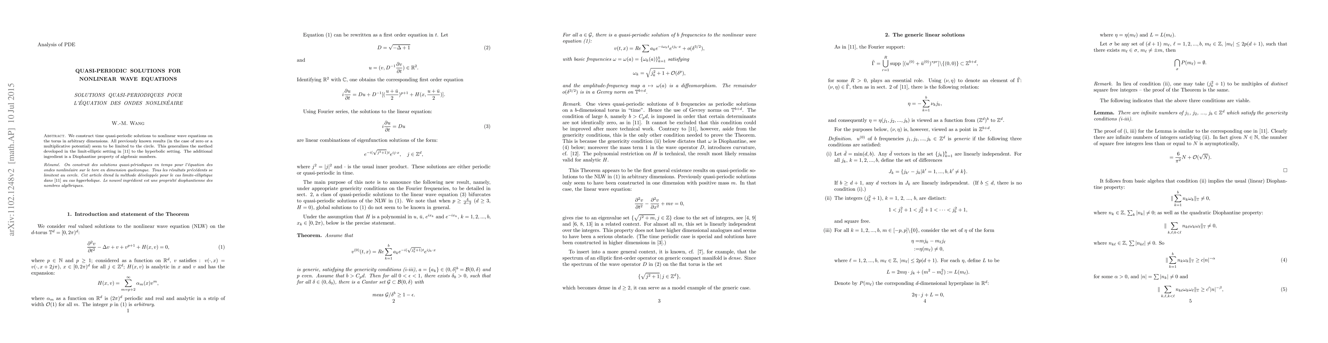 This paper constructs time quasi-periodic solutions for nonlinear wave equations on the torus, extending previous methods from the elliptic to the hyperbolic setting. The key innovation is the use of a Diophantine property of algebraic numbers to generalize the approach beyond the circle.
