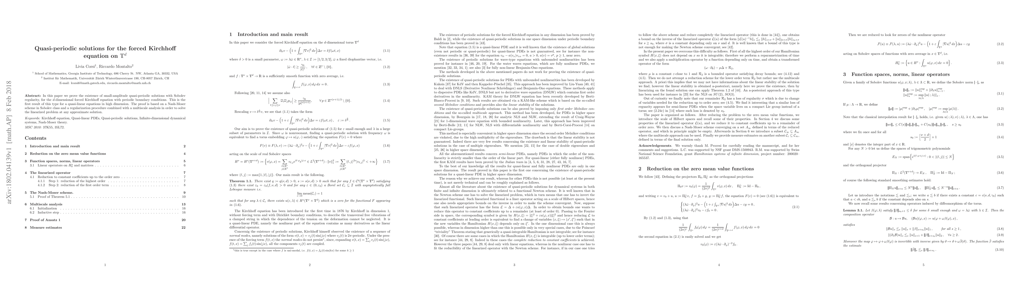 The paper proves the existence of small-amplitude quasi-periodic solutions for the forced Kirchhoff equation on $ au^d$, marking a breakthrough in solving quasi-linear equations in high dimensions.