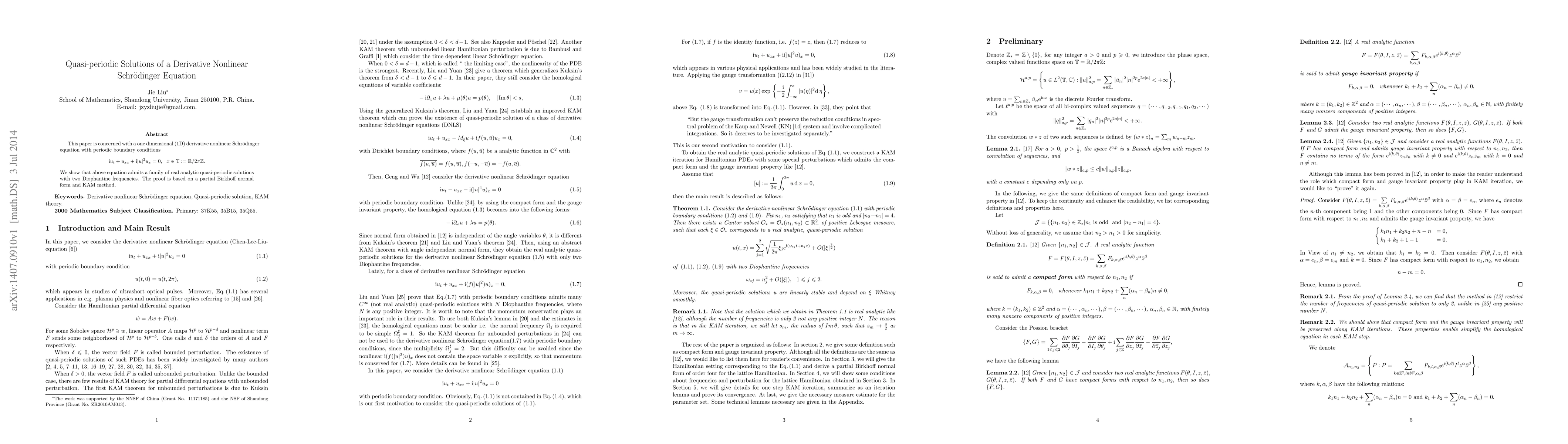 This paper investigates a one-dimensional derivative nonlinear Schrödinger equation with periodic boundary conditions, demonstrating the existence of a family of real analytic quasi-periodic solutions with two Diophantine frequencies, using a partial Birkhoff normal form and KAM method for the proof.
