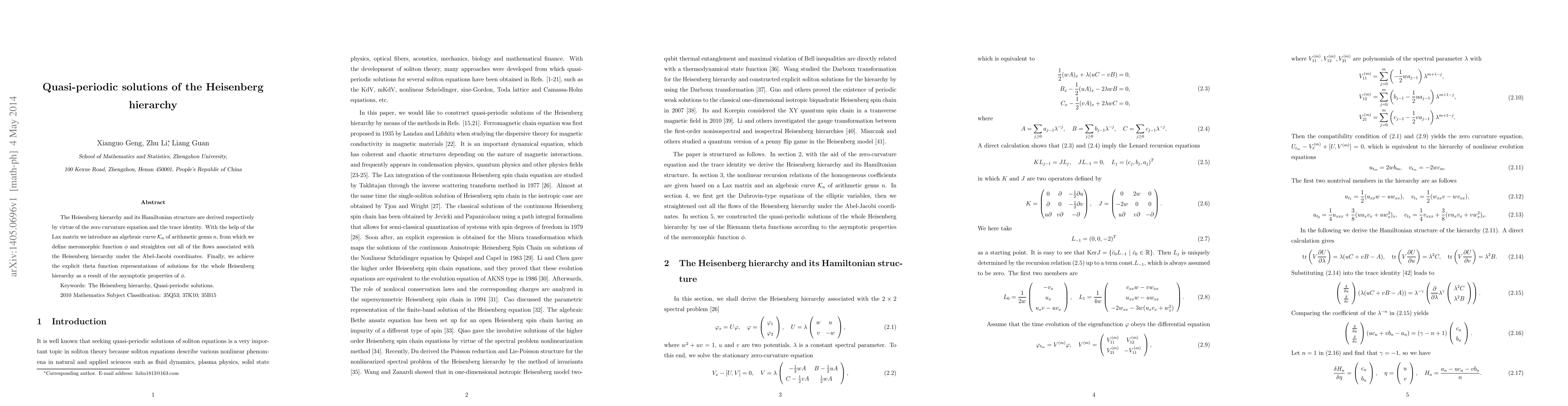 Researchers develop explicit theta function representations for solutions of the Heisenberg hierarchy, a mathematical framework describing fluid dynamics, using an algebraic curve and Lax matrix.