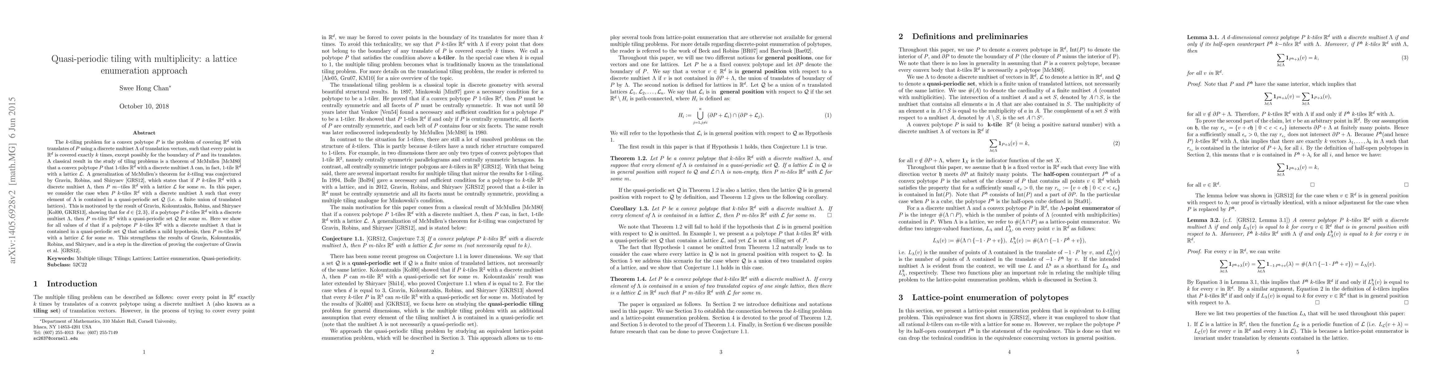 This paper generalizes the conjecture of Gravin, Robins, and Shiryaev regarding the $k$-tiling of $\mathbb{R}^d$ by a convex polytope $P$ using a lattice, showing that if $P$ $k$-tiles $\mathbb{R}^d$ with a discrete multiset contained in a quasi-periodic set, then $P$ $m$-tiles $\mathbb{R}^d$ with a lattice for some $m$, thus advancing the understanding of quasi-periodic tiling.