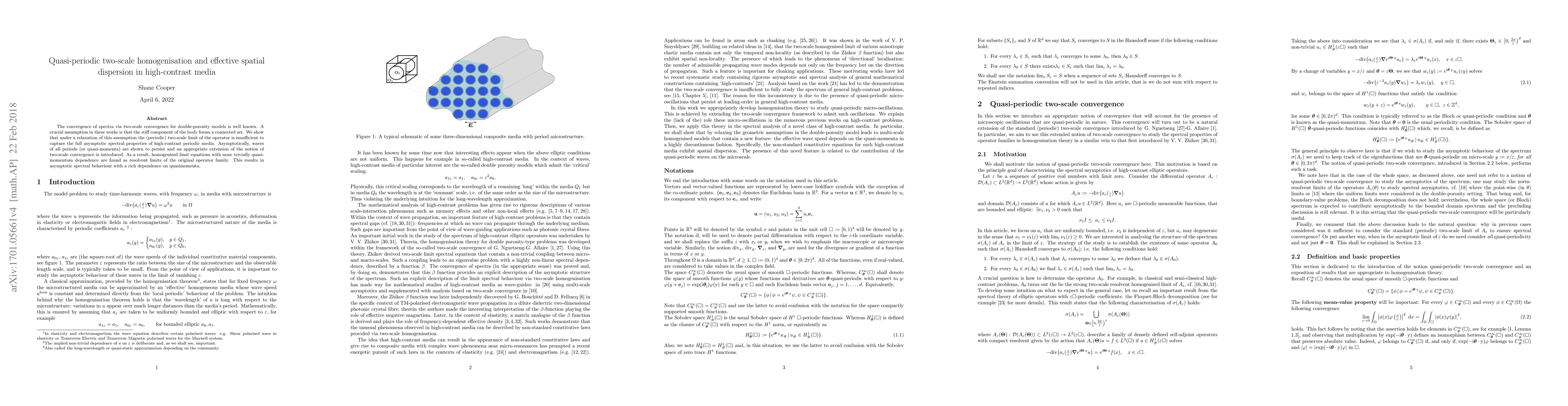 The convergence of spectra via two-scale convergence for double-porosity models is well known. A crucial assumption in these works is that the stiff component of the body forms a connected set. We show that under a relaxation of this assumption the (periodic) two-scale limit of the operator is insufficient to capture the full asymptotic spectral properties of high-contrast periodic media. Asymptotically, waves of all periods (or quasi-momenta) are shown to persist and an appropriate extension of the notion of two-scale convergence is introduced. As a result, homogenised limit equations with none trivial quasimomentum dependence are found as resolvent limits of the original operator family, resulting in limiting spectral behaviour with a rich dependence on quasimomenta.