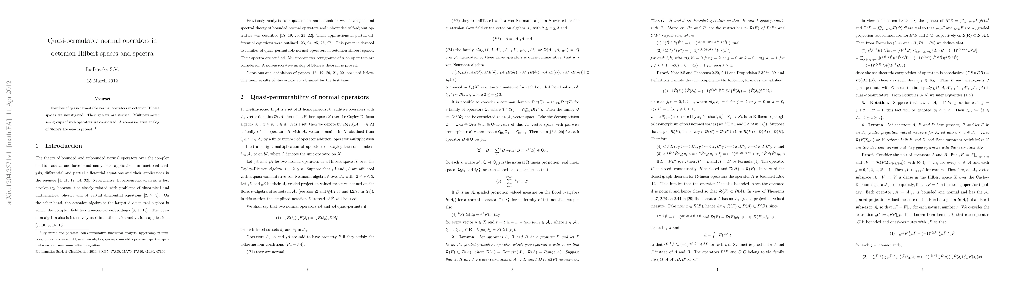 This paper explores quasi-permutable normal operators within octonion Hilbert spaces, analyzing their spectra and multiparameter semigroups. It establishes a non-associative version of Stone's theorem for these operators.