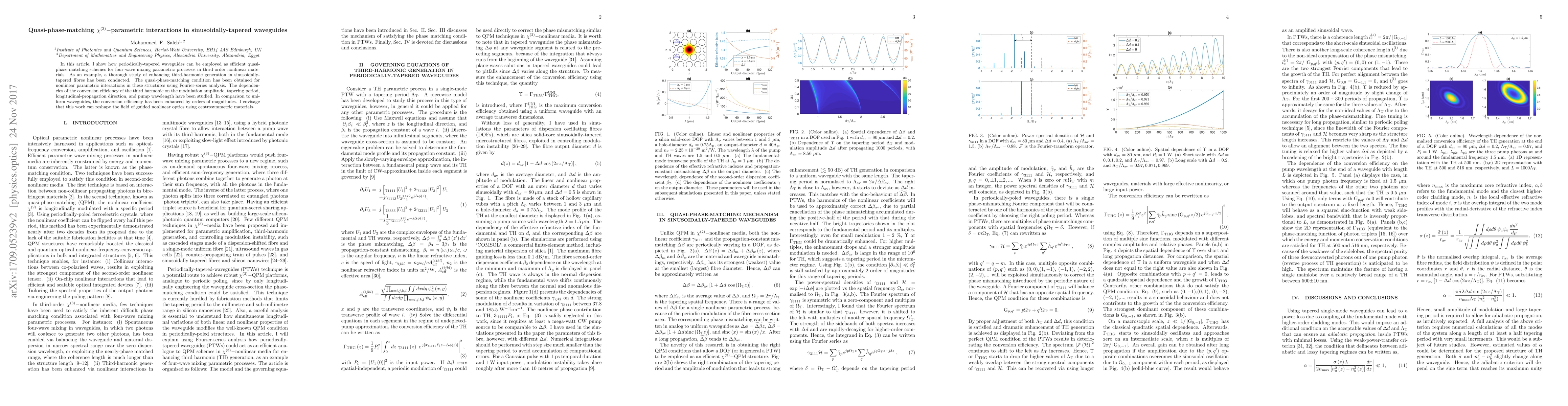 This paper demonstrates the use of periodically-tapered waveguides for quasi-phase-matching in $\chi^{(3)}$-parametric interactions, significantly enhancing third-harmonic generation efficiency in sinusoidally-tapered fibers. The study reveals substantial improvements over uniform waveguides, suggesting a transformative approach for guided nonlinear optics.