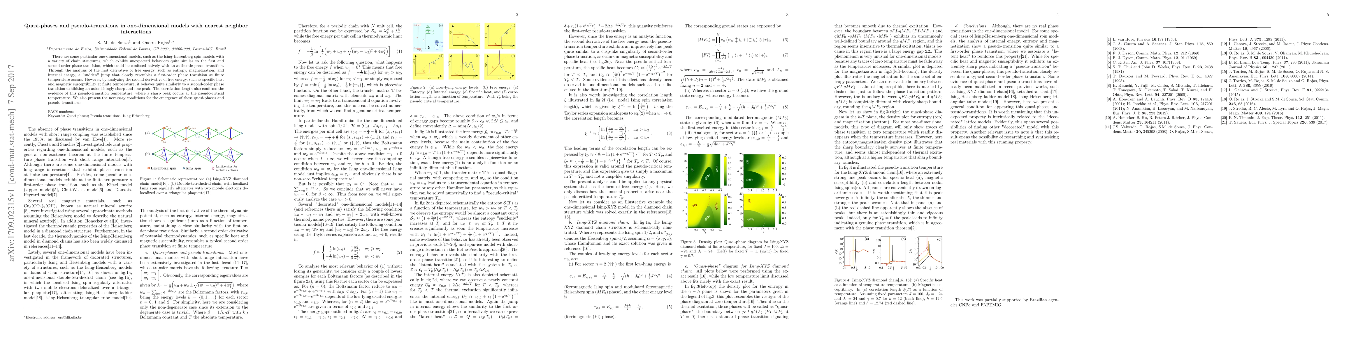 There are some particular one-dimensional models, such as the Ising-Heisenberg spin models with a variety of chain structures, which exhibit unexpected behaviors quite similar to the first and second order phase transition, which could be confused naively with an authentic phase transition. Through the analysis of the first derivative of free energy, such as entropy, magnetization, and internal energy, a "sudden" jump that closely resembles a first-order phase transition at finite temperature occurs. However, by analyzing the second derivative of free energy, such as specific heat and magnetic susceptibility at finite temperature, it behaves quite similarly to a second-order phase transition exhibiting an astonishingly sharp and fine peak. The correlation length also confirms the evidence of this pseudo-transition temperature, where a sharp peak occurs at the pseudo-critical temperature. We also present the necessary conditions for the emergence of these quasi-phases and pseudo-transitions.