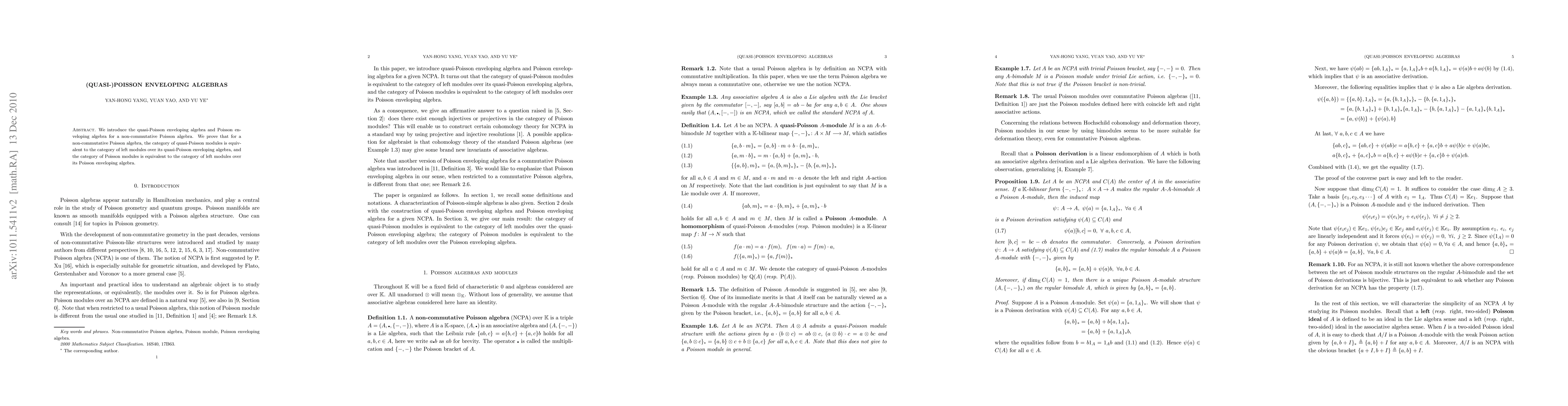 This paper introduces quasi-Poisson and Poisson enveloping algebras for non-commutative Poisson algebras and proves the equivalence of module categories for quasi-Poisson and Poisson modules with their respective enveloping algebras.