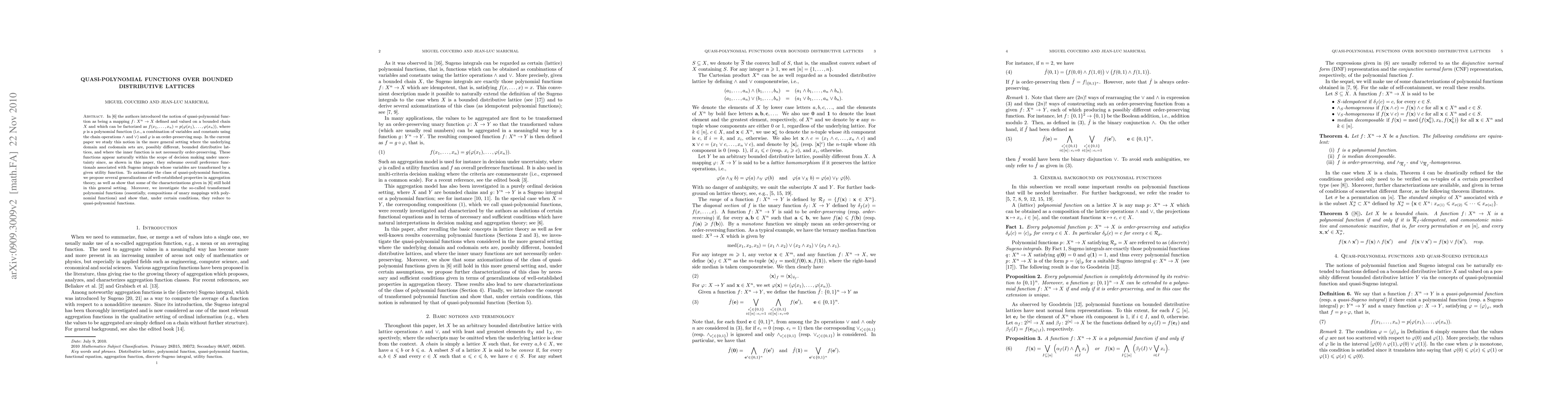This paper explores the concept of quasi-polynomial functions over bounded distributive lattices, generalizing their definition beyond bounded chains. It proposes new axioms for this class and demonstrates their relevance in decision making under uncertainty, particularly in preference aggregation using Sugeno integrals.