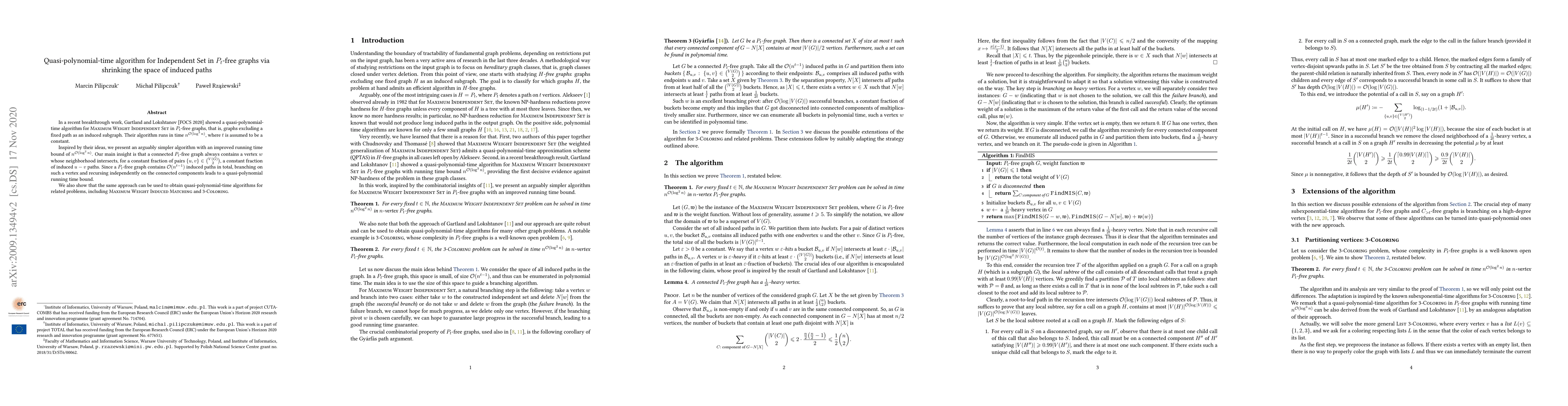 Stéphan Thomassé, Maria Chudnovsky, Michał Pilipczuk et al.