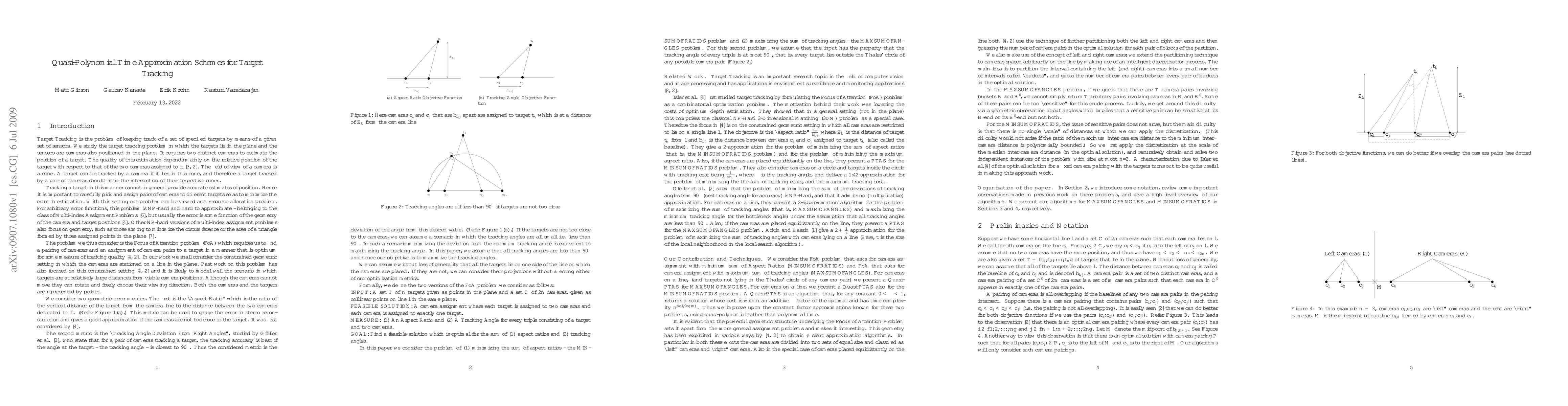 This paper presents quasi-polynomial time approximation schemes for target tracking using cameras. It maximizes the sum of tracking angles and minimizes the sum of distance ratios between targets and cameras, achieving $(1-\epsilon)$ and $(1+\epsilon)$ approximation factors respectively, for any $\epsilon > 0$.