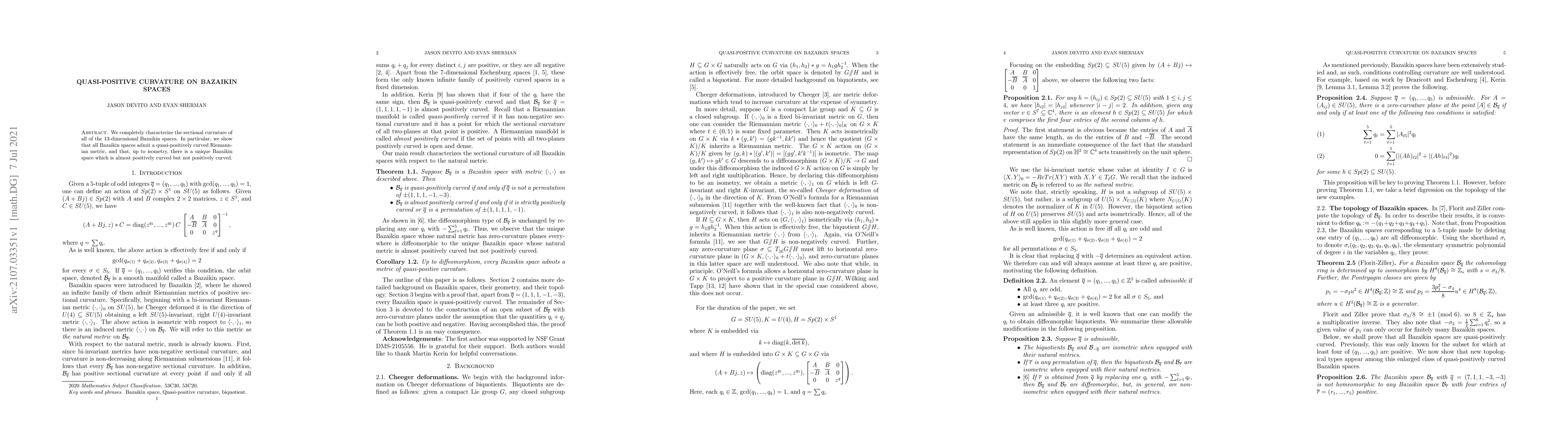 The research characterizes the sectional curvature of 13-dimensional Bazaikin spaces, revealing that all admit quasi-positive curvature metrics. It identifies a unique Bazaikin space that is almost but not fully positively curved.