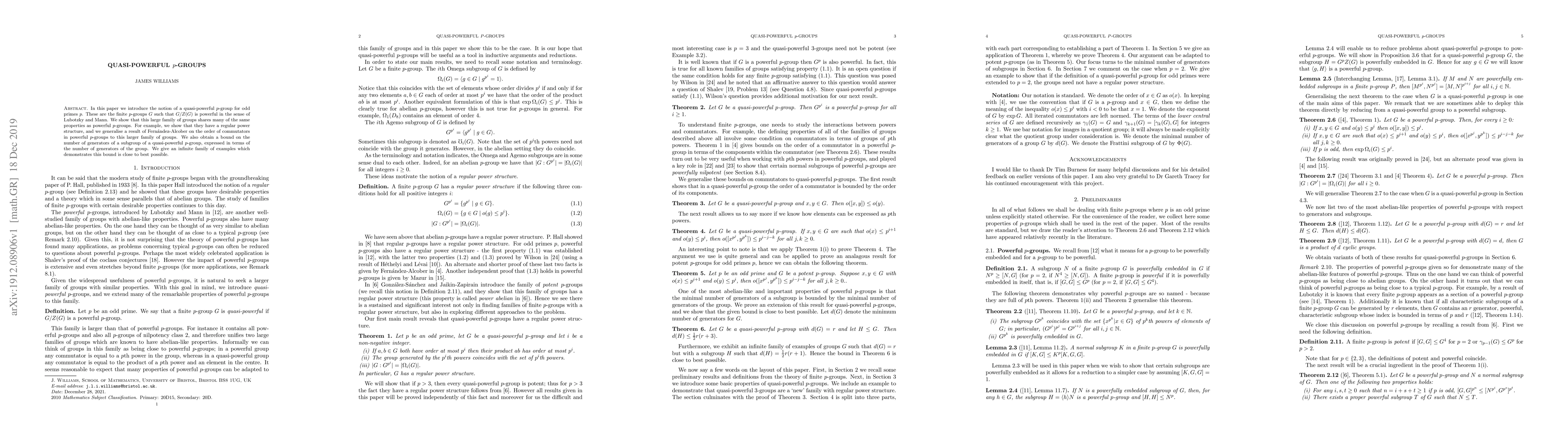 This paper introduces quasi-powerful $p$-groups for odd primes $p$, where $G/Z(G)$ is powerful. It demonstrates that these groups share many properties with powerful $p$-groups, including a regular power structure and a generalized result on commutator orders.