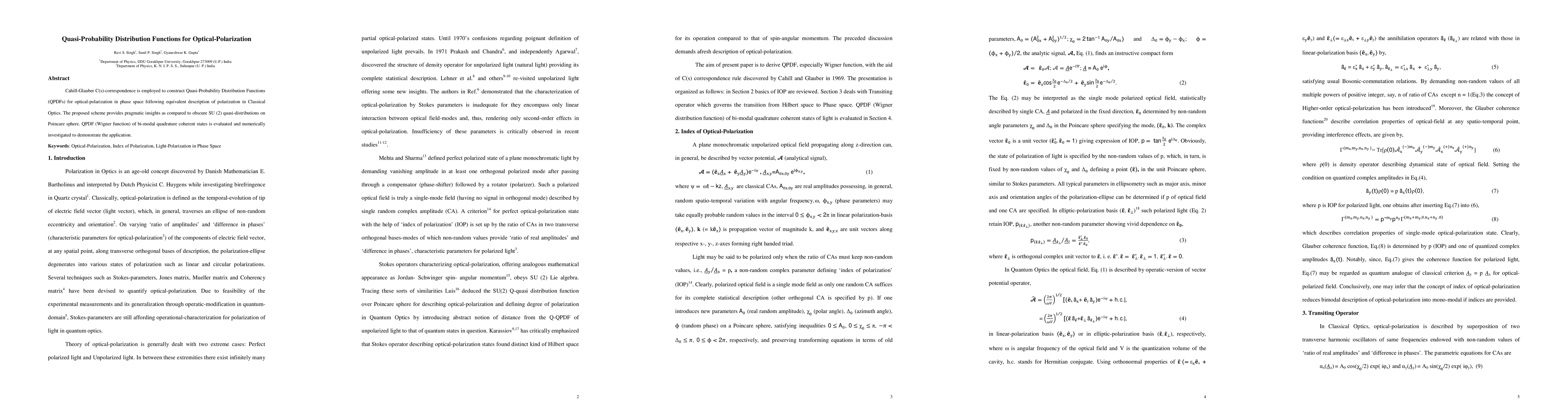 This paper constructs Quasi-Probability Distribution Functions (QPDFs) for optical-polarization using Cahill-Glauber C(s)-correspondence, offering clearer insights than SU(2) quasi-distributions. The Wigner function for bi-modal quadrature coherent states is evaluated and numerically analyzed to illustrate the approach.