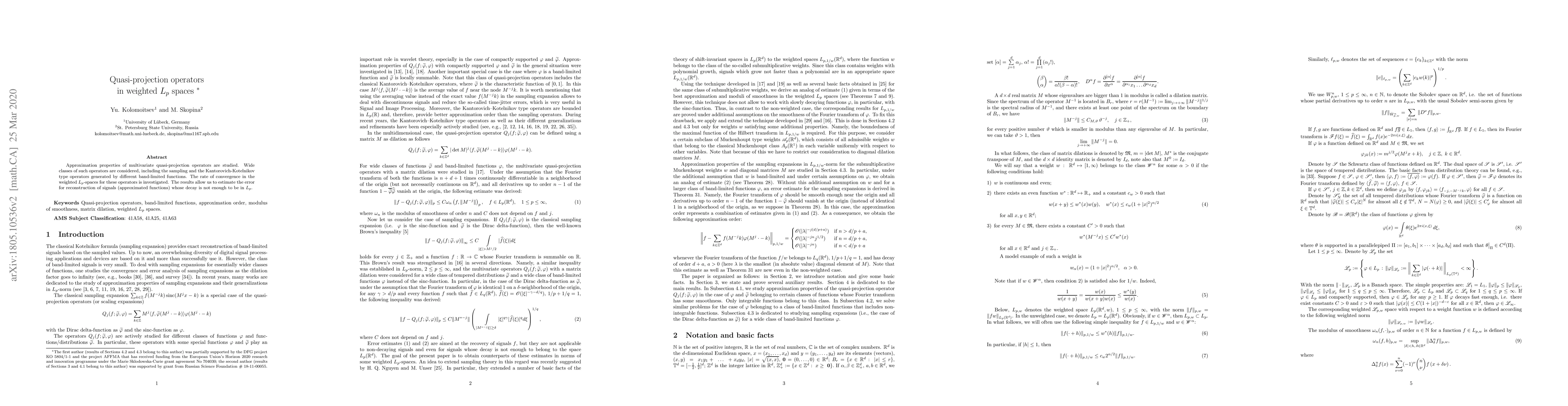 Research investigates the approximation properties of quasi-projection operators in weighted Lp spaces, finding the rate of convergence for various types of band-limited functions and their applications to signal reconstruction.