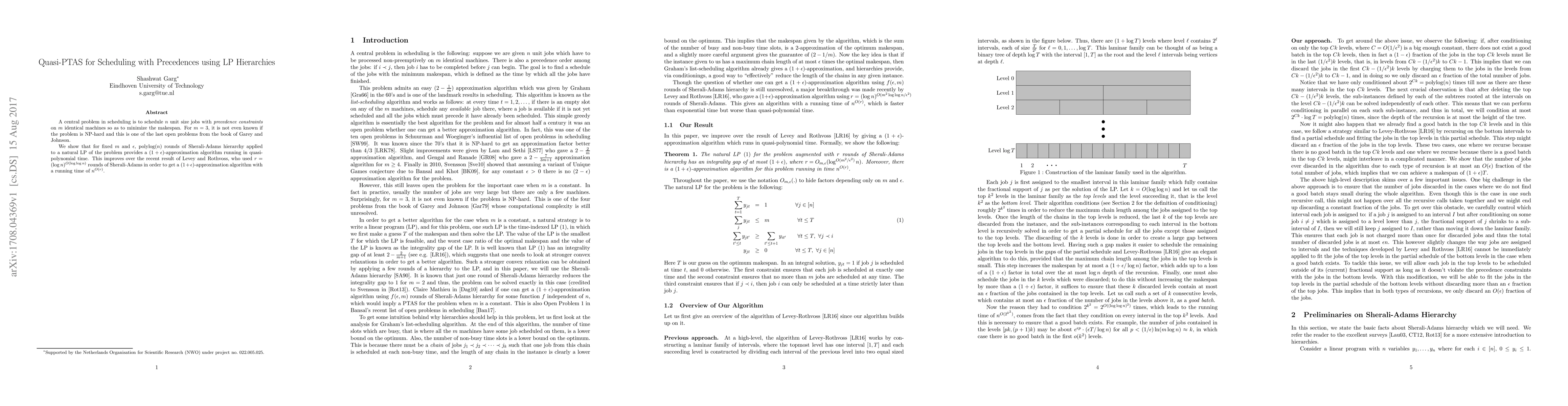 This paper presents a quasi-PTAS for scheduling unit-size jobs with precedence constraints on identical machines, using $(\log n)^{O(1)}$ rounds of Sherali-Adams hierarchy applied to a natural LP, achieving a $(1+\epsilon)$-approximation in quasi-polynomial time. This improves upon previous results by reducing the number of rounds and the running time.