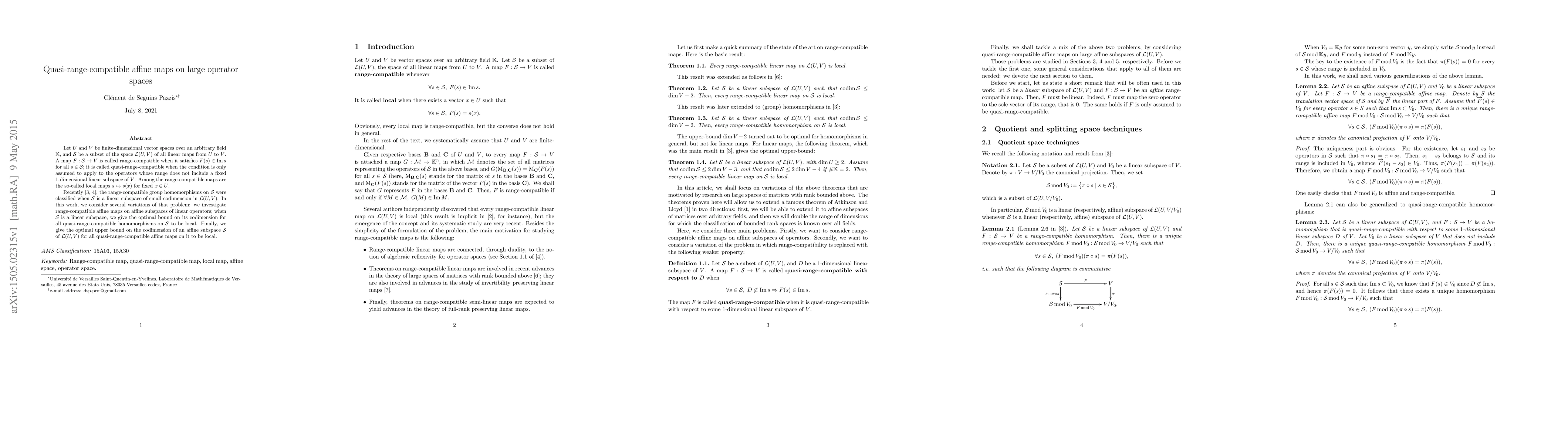Let $U$ and $V$ be finite-dimensional vector spaces over an arbitrary field, and $\mathcal{S}$ be a subset of the space $\mathcal{L}(U,V)$ of all linear maps from $U$ to $V$. A map $F : \mathcal{S} \rightarrow V$ is called range-compatible when it satisfies $F(s) \in \mathrm{im}(s)$ for all $s \in \mathcal{S}$; it is called quasi-range-compatible when the condition is only assumed to apply to the operators whose range does not include a fixed $1$-dimensional linear subspace of $V$. Among the range-compatible maps are the so-called local maps $s \mapsto s(x)$ for fixed $x \in U$. Recently, the range-compatible group homomorphisms on $\mathcal{S}$ were classified when $\mathcal{S}$ is a linear subspace of small codimension in $\mathcal{L}(U,V)$. In this work, we consider several variations of that problem: we investigate range-compatible affine maps on affine subspaces of linear operators; when $\mathcal{S}$ is a linear subspace, we give the optimal bound on its codimension for all quasi-range-compatible homomorphisms on $\mathcal{S}$ to be local. Finally, we give the optimal upper bound on the codimension of an affine subspace $\mathcal{S}$ of $\mathcal{L}(U,V)$ for all quasi-range-compatible affine maps on it to be local.