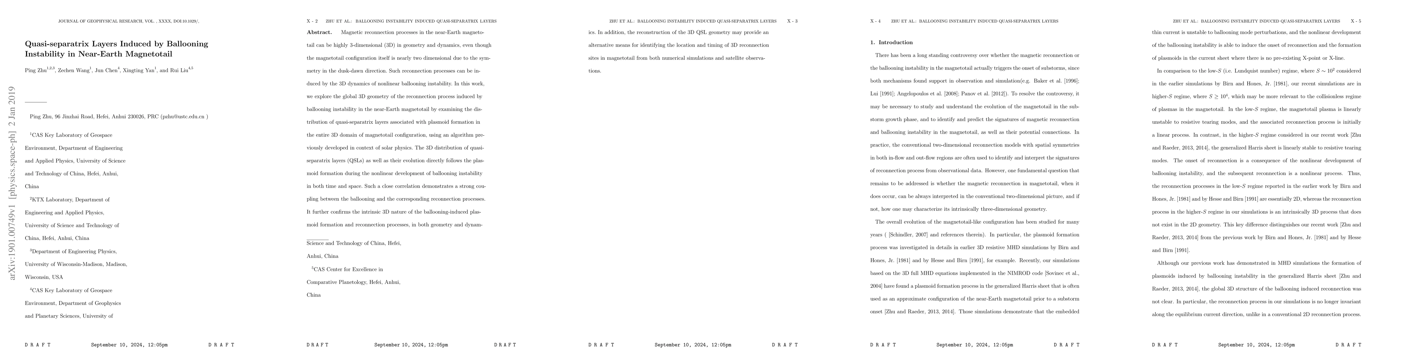 Magnetic reconnection processes in the near-Earth magnetotail can be highly 3-dimensional (3D) in geometry and dynamics, even though the magnetotail configuration itself is nearly two dimensional due to the symmetry in the dusk-dawn direction. Such reconnection processes can be induced by the 3D dynamics of nonlinear ballooning instability. In this work, we explore the global 3D geometry of the reconnection process induced by ballooning instability in the near-Earth magnetotail by examining the distribution of quasi-separatrix layers associated with plasmoid formation in the entire 3D domain of magnetotail configuration, using an algorithm previously developed in context of solar physics. The 3D distribution of quasi-separatrix layers (QSLs) as well as their evolution directly follows the plasmoid formation during the nonlinear development of ballooning instability in both time and space. Such a close correlation demonstrates a strong coupling between the ballooning and the corresponding reconnection processes. It further confirms the intrinsic 3D nature of the ballooning-induced plasmoid formation and reconnection processes, in both geometry and dynamics. In addition, the reconstruction of the 3D QSL geometry may provide an alternative means for identifying the location and timing of 3D reconnection sites in magnetotail from both numerical simulations and satellite observations.