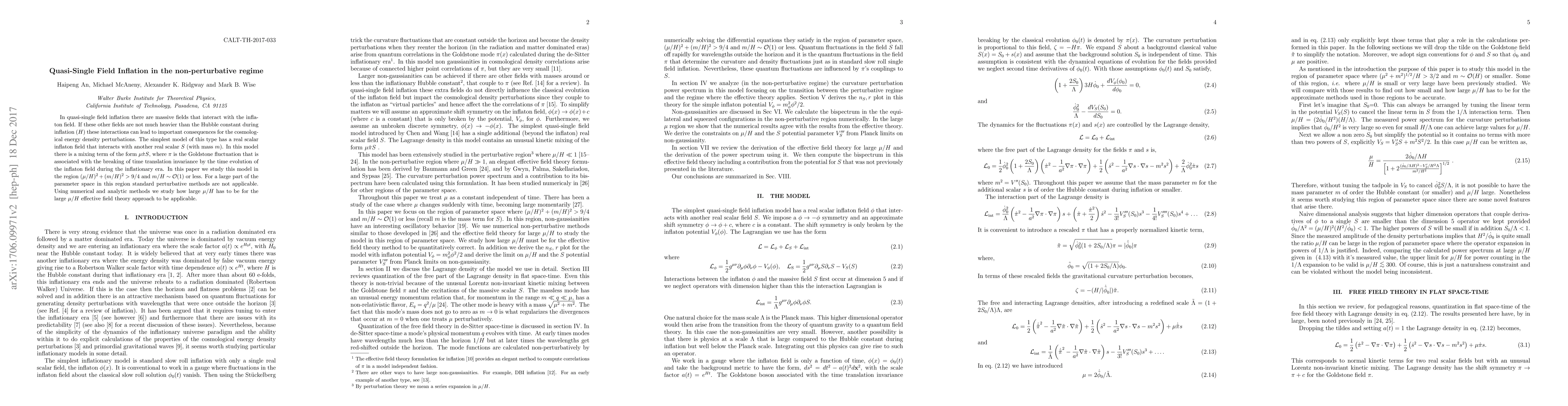 This paper investigates quasi single field inflation in the non-perturbative regime where massive fields interact with the inflaton field, focusing on the model with a mixing term $\mu {\dot \pi} S$. It derives new results using numerical and analytic methods for parameter space where standard perturbative methods fail, and examines the conditions for the effective field theory approach to be valid.