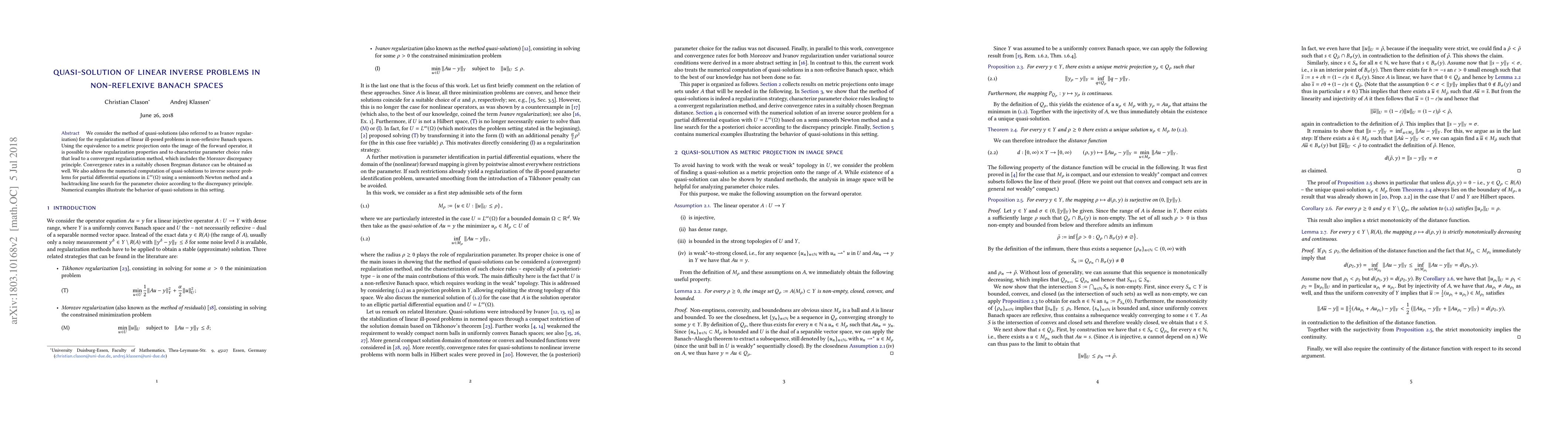 This paper develops a method for solving linear inverse problems in non-reflexive Banach spaces using quasi-solutions, which converge under certain conditions and offer improved parameter choice rules, including the Morozov discrepancy principle.