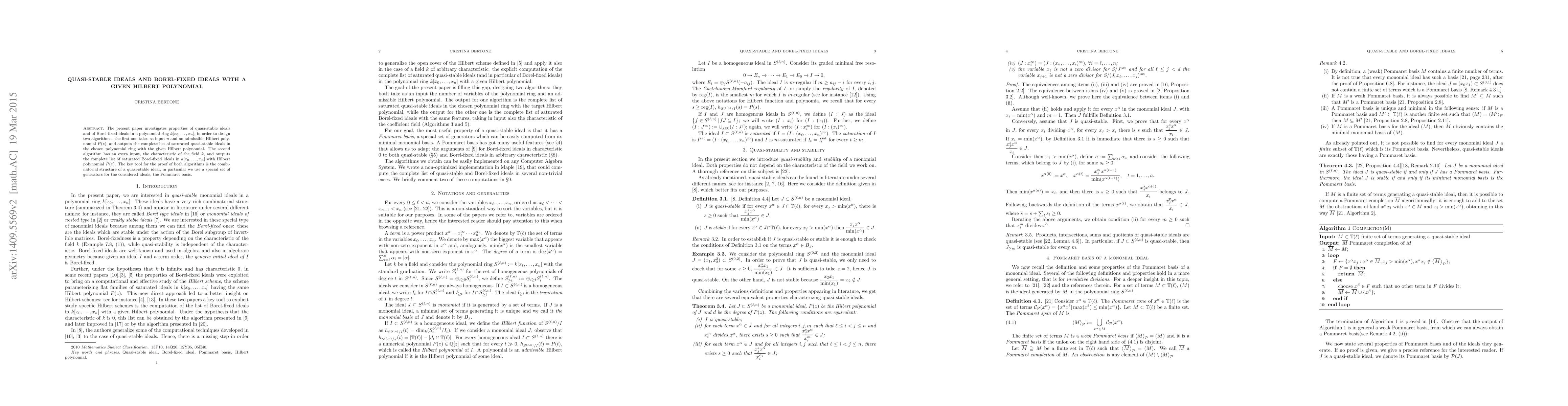 The present paper investigates properties of quasi-stable ideals and of Borel-fixed ideals in a polynomial ring $k[x_0,\dots,x_n]$, in order to design two algorithms: the first one takes as input $n$ and an admissible Hilbert polynomial $P(z)$, and outputs the complete list of saturated quasi-stable ideals in the chosen polynomial ring with the given Hilbert polynomial. The second algorithm has an extra input, the characteristic of the field $k$, and outputs the complete list of saturated Borel-fixed ideals in $k[x_0,\dots,x_n]$ with Hilbert polynomial $P(z)$. The key tool for the proof of both algorithms is the combinatorial structure of a quasi-stable ideal, in particular we use a special set of generators for the considered ideals, the Pommaret basis.