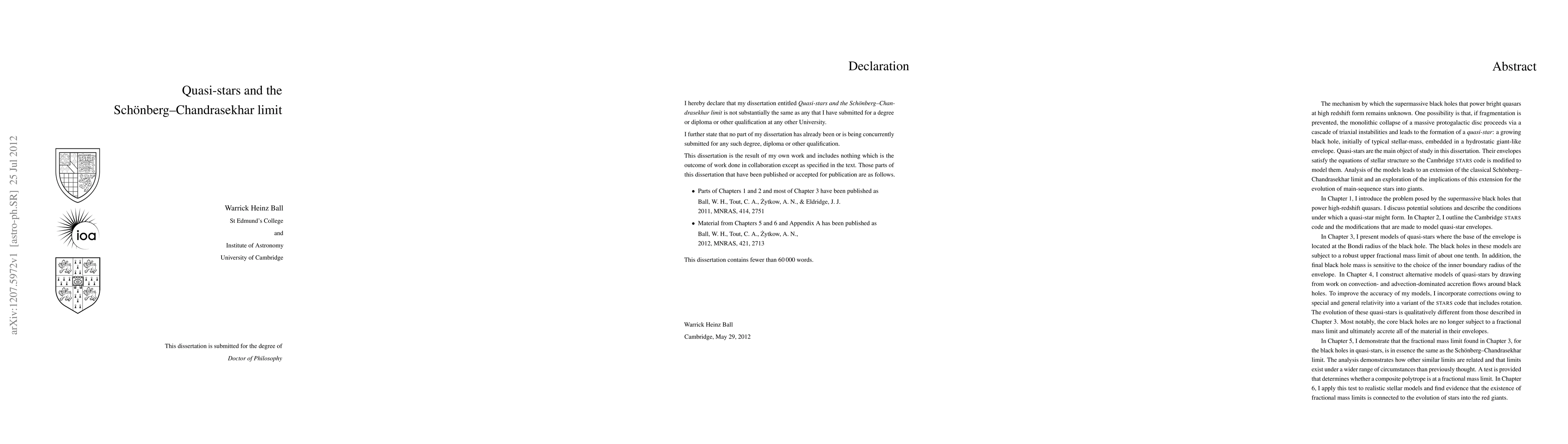 The mechanism by which the supermassive black holes that power bright quasars at high redshift form remains unknown. One possibility is that ... the monolithic collapse of a massive protogalactic disc ... leads to the formation of a quasi-star: a growing black hole, initially of typical stellar-mass, embedded in a hydrostatic giant-like envelope. Quasi-stars are the main object of study in this dissertation. ... In Chapter 1, I introduce the problem posed by the supermassive black holes that power high-redshift quasars. ... In Chapter 2, I outline the Cambridge STARS code and the modifications that are made to model quasi-star envelopes. In Chapter 3, I present models of quasi-stars where the base of the envelope is located at the Bondi radius of the black hole. The black holes in these models are subject to a robust upper fractional mass limit of about one tenth. In addition, the final black hole mass is sensitive to the choice of the inner boundary radius of the envelope. In Chapter 4, I construct alternative models of quasi-stars by drawing from work on convection- and advection-dominated accretion flows ... The evolution of these quasi-stars is qualitatively different from those described in Chapter 3. ... [T]he core black holes are no longer subject to a fractional mass limit and ultimately accrete all of the material in their envelopes. In Chapter 5, I demonstrate that the fractional mass limit found in Chapter 3 ... is in essence the same as the Sch\"onberg-Chandrasekhar limit. The analysis demonstrates ... that limits exist under a wider range of circumstances than previously thought. A test is provided that determines whether a composite polytrope is at a fractional mass limit. In Chapter 6, I apply this test to realistic stellar models and find evidence that the existence of fractional mass limits is connected to the evolution of stars into the red giants.