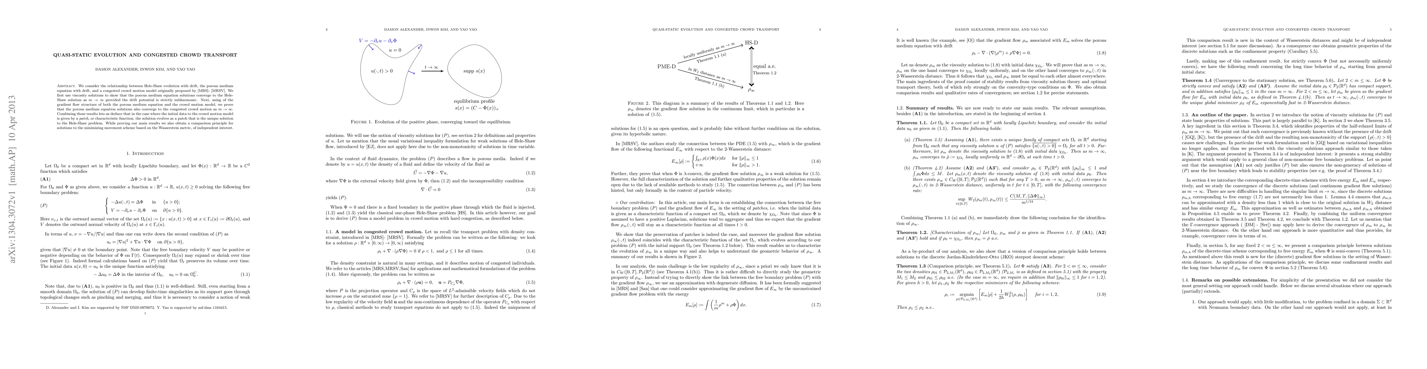 We consider the relationship between Hele-Shaw evolution with drift, the porous medium equation with superharmonic drift, and a congested crowd motion model originally proposed by [MRS]- [MRSV]. We first use viscosity solutions to show that the porous medium equation solutions converge to the Hele- Shaw solution as the exponent tends to infinity. Next, using of the gradient flow structure of both the porous medium equation and the crowd motion model, we prove that the porous medium equation solutions also converge to the congested crowd motion. Combining these results lets us deduce that in the case where the initial data to the crowd motion model is given by a patch, or characteristic function, the solution evolves as a patch that is the unique solution to the Hele-Shaw problem. While proving our main results we also obtain a comparison principle for solutions to the minimizing movement scheme based on the Wasserstein metric, of independent interest.