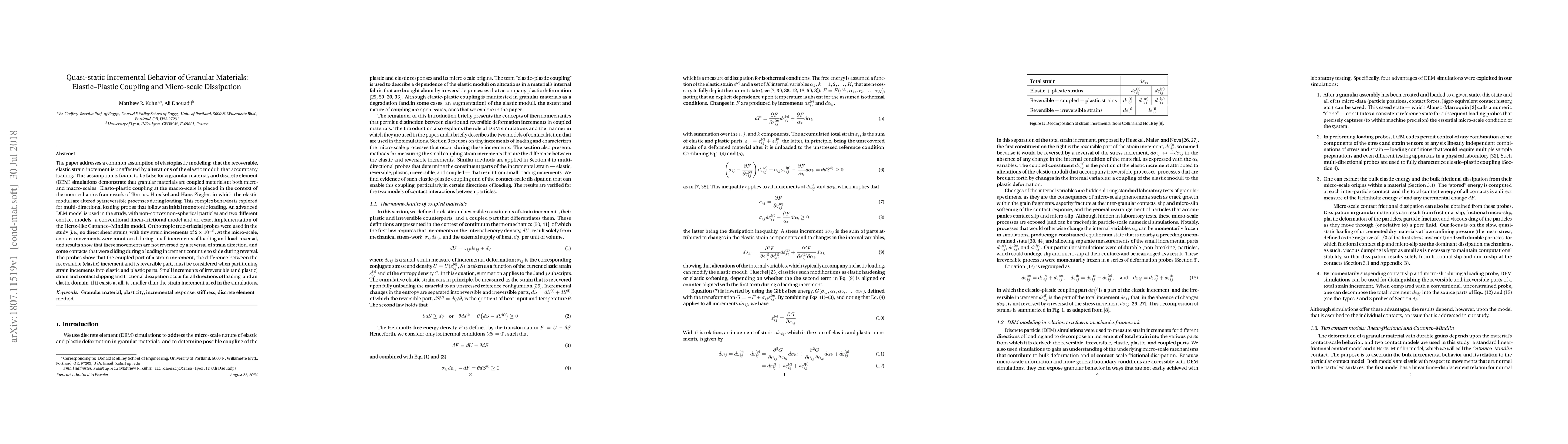 The paper reveals that granular materials exhibit elasto-plastic coupling at both micro- and macro-scales, challenging the assumption that elastic strain increments are unaffected by changes in elastic moduli. Discrete element simulations show irreversible strain and contact slipping even with small loading increments, indicating a need to consider coupled strain components in elasto-plastic modeling.