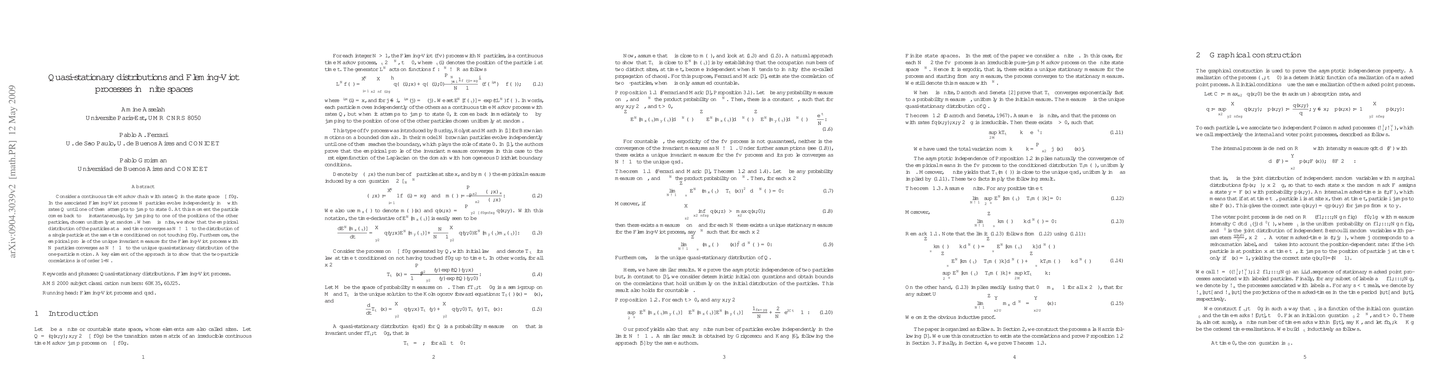 This paper investigates the behavior of Fleming-Viot processes in finite state spaces, demonstrating that as the number of particles N approaches infinity, the empirical distribution of particles converges to the distribution of a single particle conditioned on non-absorption. It also shows that the empirical profile of the invariant measure converges to the unique quasi-stationary distribution of the one-particle motion.