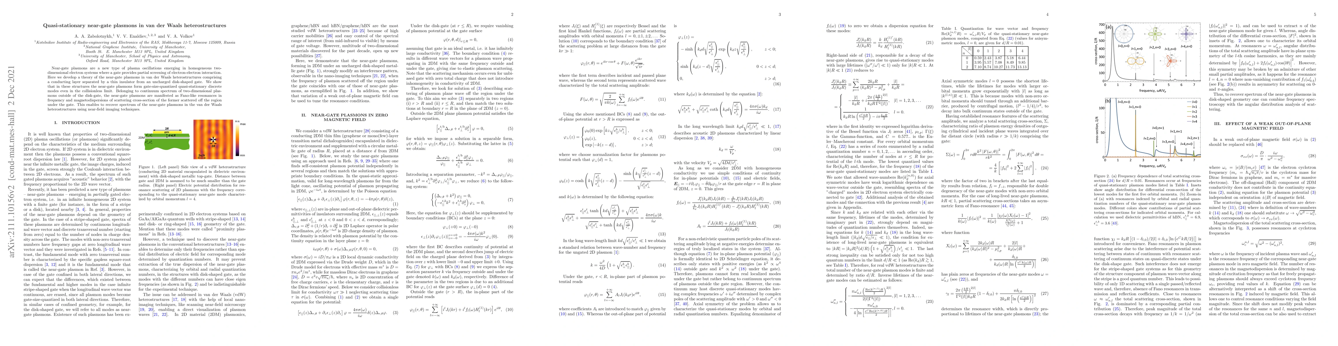 This research develops a theoretical framework for near-gate plasmons in van der Waals heterostructures, showing they form quantized, quasi-stationary modes even without collisions. These plasmons appear as Fano-like resonances in scattering cross-section, enabling their spectrum to be retrieved using near-field imaging.