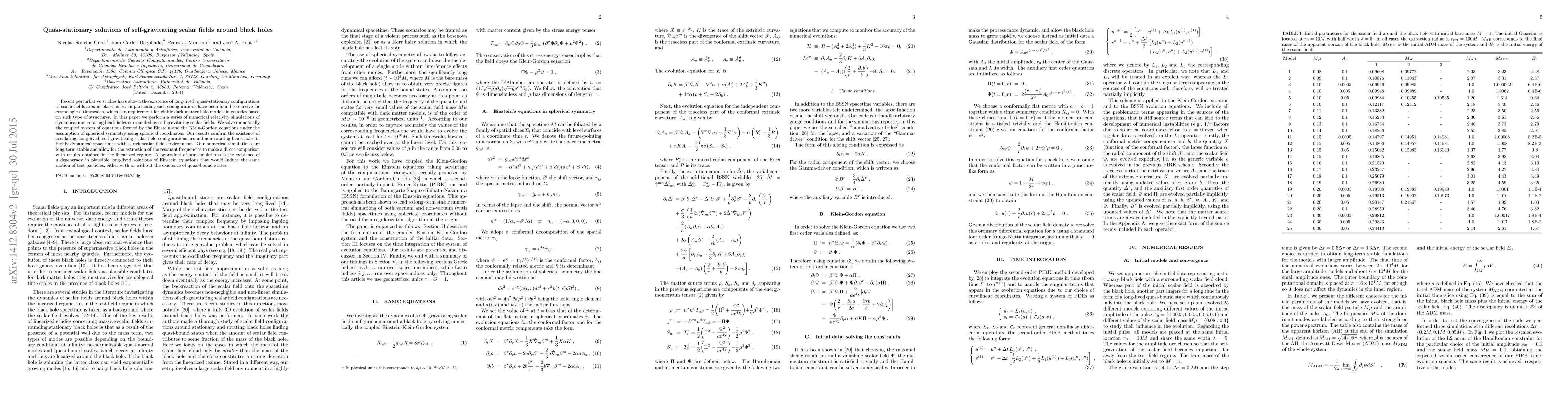 This paper confirms the existence of long-lived, quasi-stationary configurations of self-gravitating scalar fields around non-rotating black holes through numerical relativity simulations. The results show stable, oscillating fields and reveal resonant frequencies, supporting their viability in dark matter halo models.