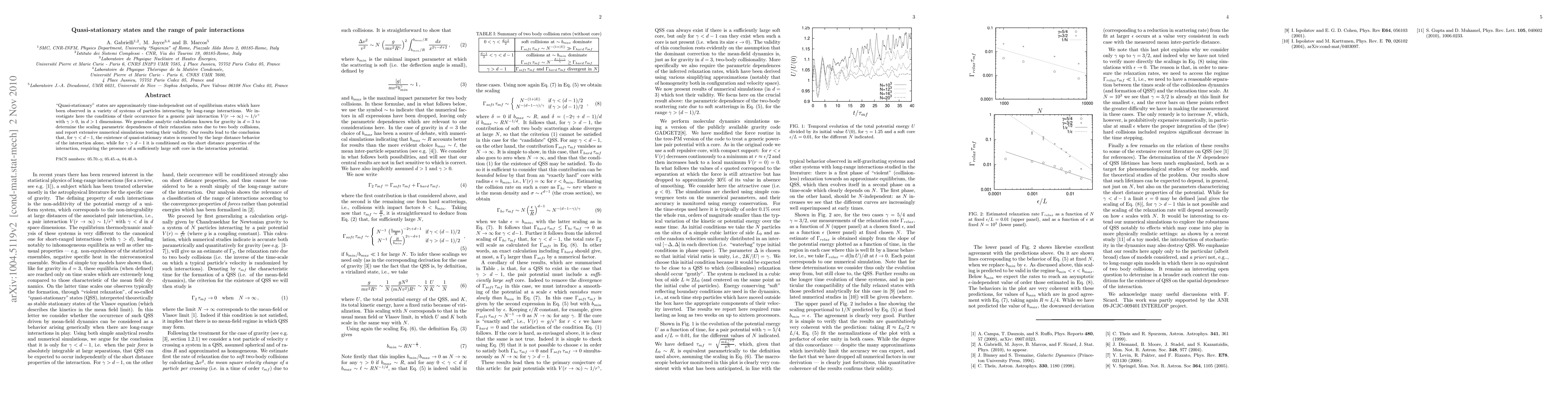 "Quasi-stationary" states are approximately time-independent out of equilibrium states which have been observed in a variety of systems of particles interacting by long-range interactions. We investigate here the conditions of their occurrence for a generic pair interaction V(r \rightarrow \infty) \sim 1/r^a with a > 0, in d>1 dimensions. We generalize analytic calculations known for gravity in d=3 to determine the scaling parametric dependences of their relaxation rates due to two body collisions, and report extensive numerical simulations testing their validity. Our results lead to the conclusion that, for a < d-1, the existence of quasi-stationary states is ensured by the large distance behavior of the interaction alone, while for a > d-1 it is conditioned on the short distance properties of the interaction, requiring the presence of a sufficiently large soft-core in the interaction potential.
