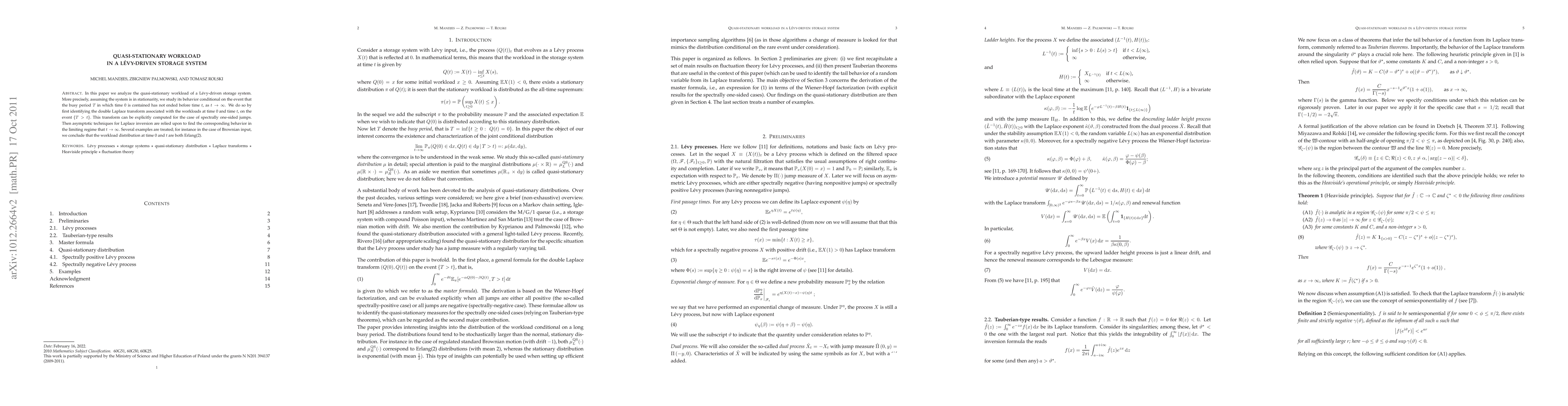 This paper explores the quasi-stationary workload in a Lévy-driven storage system, focusing on the behavior conditional on the busy period not ending before time $t$ as $t\to\infty$. It identifies the double Laplace transform for workloads and uses asymptotic techniques for Laplace inversion to determine the limiting regime behavior, concluding with examples like Brownian input resulting in an Erlang(2) workload distribution.