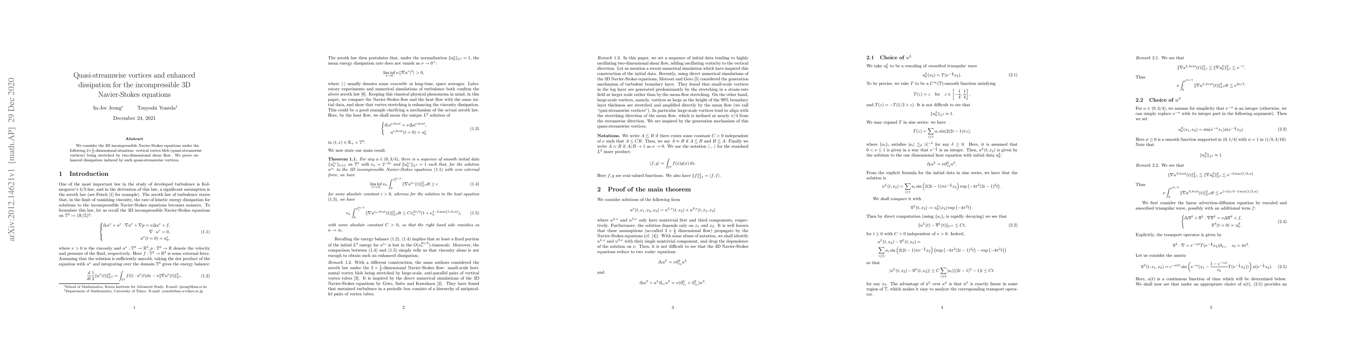 Summary: This paper investigates the 3D incompressible Navier-Stokes equations in a $2+\frac{1}{2}$-dimensional context, focusing on vertical vortex blobs (quasi-streamwise vortices) stretched by a 2D shear flow, and demonstrates the enhanced dissipation caused by these vortices.