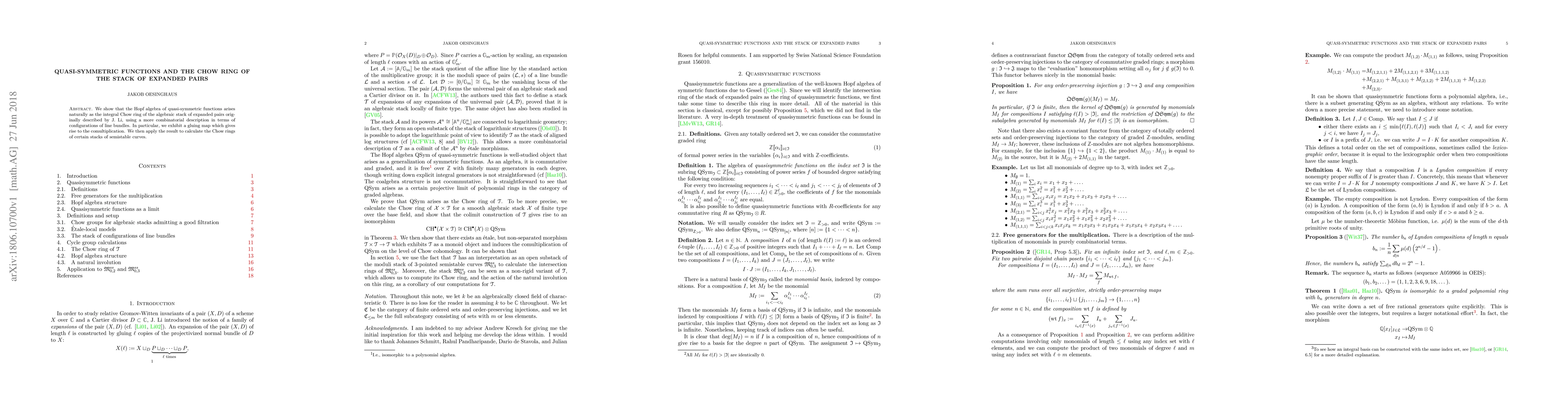 We show that the Hopf algebra of quasi-symmetric functions arises naturally as the integral Chow ring of the algebraic stack of expanded pairs originally described by J. Li, using a more combinatorial description in terms of configurations of line bundles. In particular, we exhibit a gluing map which gives rise to the comultiplication. We then apply the result to calculate the Chow rings of certain stacks of semistable curves.