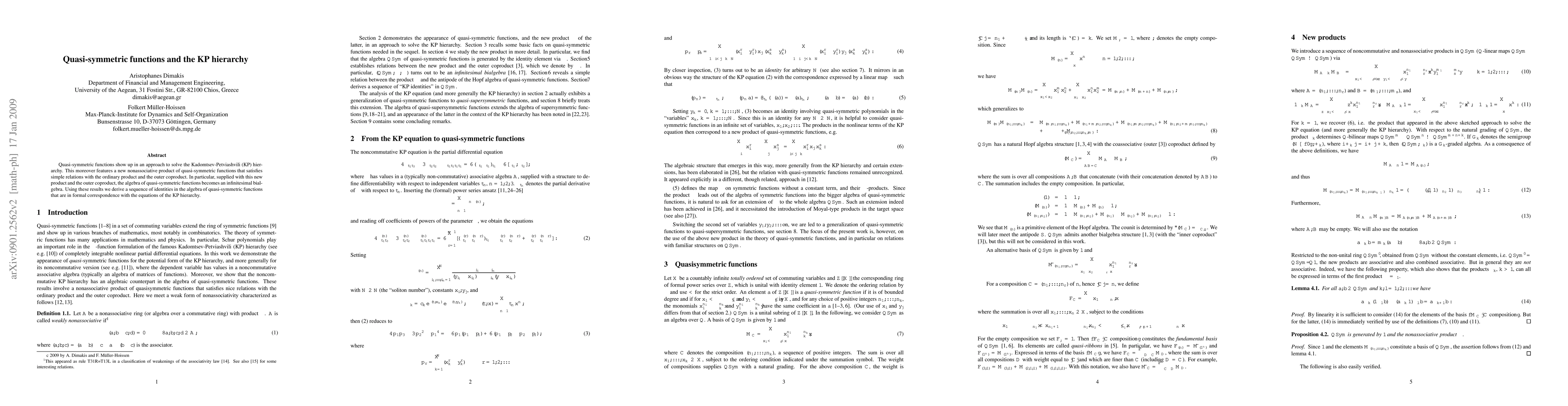 Quasi-symmetric functions show up in an approach to solve the Kadomtsev-Petviashvili (KP) hierarchy. This moreover features a new nonassociative product of quasi-symmetric functions that satisfies simple relations with the ordinary product and the outer coproduct. In particular, supplied with this new product and the outer coproduct, the algebra of quasi-symmetric functions becomes an infinitesimal bialgebra. Using these results we derive a sequence of identities in the algebra of quasi-symmetric functions that are in formal correspondence with the equations of the KP hierarchy.