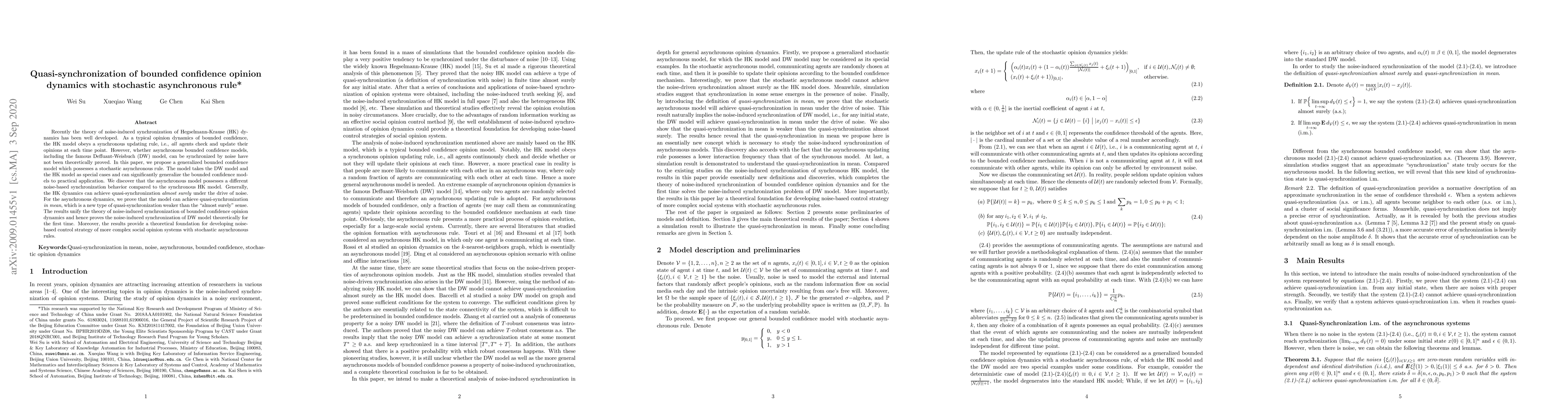 This paper proposes a generalized bounded confidence model with a stochastic asynchronous rule, proving that it can achieve quasi-synchronization in mean, thus unifying the theory of noise-induced synchronization for opinion dynamics and theoretically confirming the synchronization of the Deffuant-Weisbuch model for the first time. The findings provide a foundation for developing noise-based control strategies in complex social opinion systems.