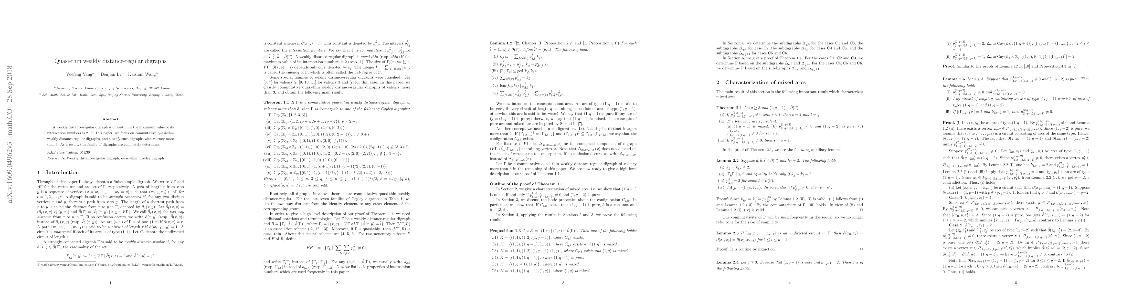 This paper classifies commutative quasi-thin weakly distance-regular digraphs with valency greater than 3, determining this family completely when the maximum intersection number is 2. The classification reveals the structural properties of these digraphs.