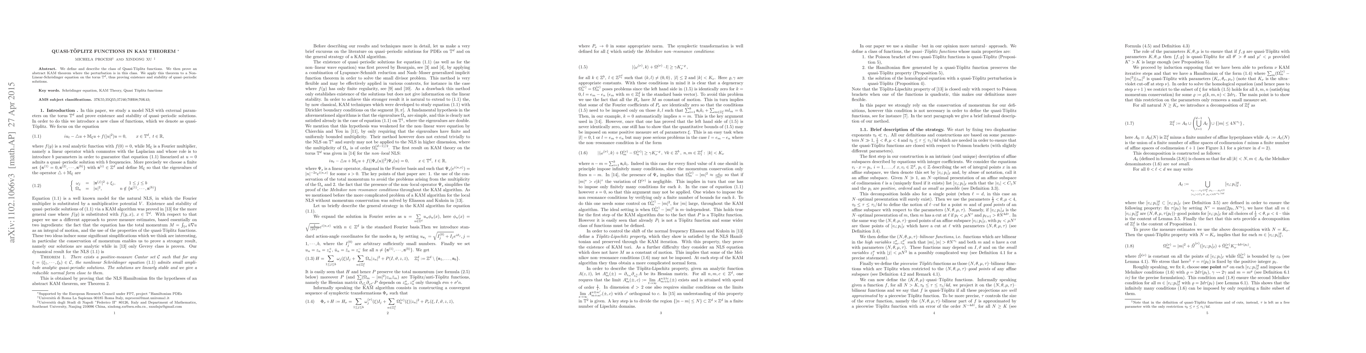 A new class of functions called Quasi-Toplitz functions is introduced and used to prove an abstract KAM theorem, showing existence and stability of quasi-periodic solutions for the Non-Linear-Schr"odinger equation on the torus.