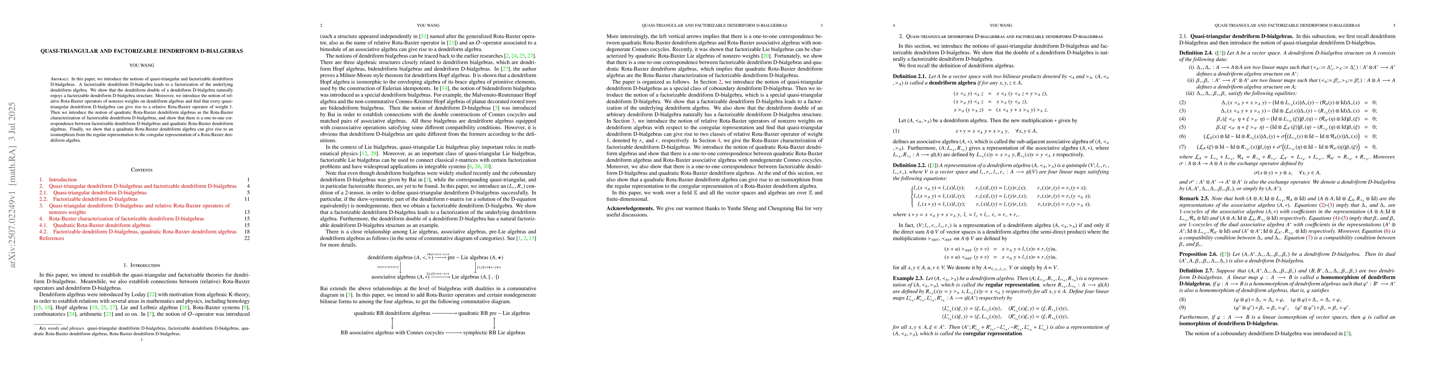 In this paper, we introduce the notions of quasi-triangular and factorizable dendriform D-bialgebras. A factorizable dendriform D-bialgebra leads to a factorization of the underlying dendriform algebra. We show that the dendriform double of a dendriform D-bialgebra naturally enjoys a factorizable dendriform D-bialgebra structure. Moreover, we introduce the notion of relative Rota-Baxter operators of nonzero weights on dendriform algebras and find that every quasi-triangular dendriform D-bialgebra can give rise to a relative Rota-Baxter operator of weight 1. Then we introduce the notion of quadratic Rota-Baxter dendriform algebras as the Rota-Baxter characterization of factorizable dendriform D-bialgebras, and show that there is a one-to-one correspondence between factorizable dendriform D-bialgebras and quadratic Rota-Baxter dendriform algebras. Finally, we show that a quadratic Rota-Baxter dendriform algebra can give rise to an isomorphism from the regular representation to the coregular representation of a Rota-Baxter dendriform algebra.
