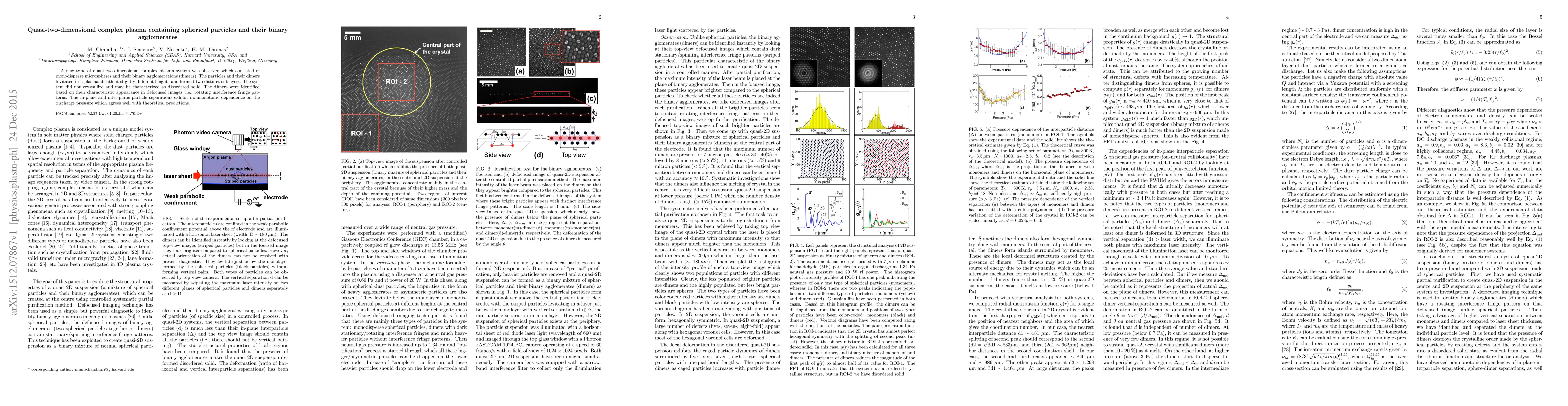 A new type of quasi-two-dimensional complex plasma system was observed which consisted of monodisperse microspheres and their binary agglomerations (dimers). The particles and their dimers levitated in a plasma sheath at slightly different heights and formed two distinct sublayers. The sys- tem did not crystallize and may be characterized as disordered solid. The dimers were identified based on their characteristic appearance in defocused images, i.e., rotating interference fringe pat- terns. The in-plane and inter-plane particle separations exhibit nonmonotonic dependence on the discharge pressure which agrees well with theoretical predictions.