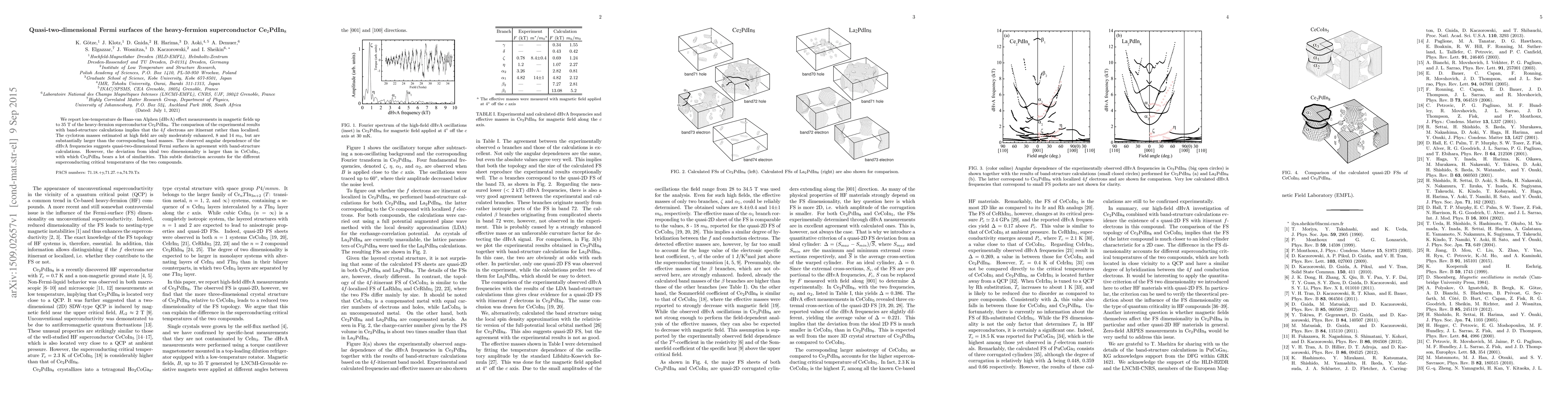 We report low-temperature de Haas-van Alphen (dHvA) effect measurements in magnetic fields up to 35 T of the heavy-fermion superconductor Ce$_2$PdIn$_8$. The comparison of the experimental results with band-structure calculations implies that the 4$f$ electrons are itinerant rather than localized. The cyclotron masses estimated at high field are only moderately enhanced, 8 and 14 $m_0$, but are substantially larger than the corresponding band masses. The observed angular dependence of the dHvA frequencies suggests quasi-two-dimensional Fermi surfaces in agreement with band-structure calculations. However, the deviation from ideal two dimensionality is larger than in CeCoIn$_5$, with which Ce$_2$PdIn$_8$ bears a lot of similarities. This subtle distinction accounts for the different superconducting critical temperatures of the two compounds.