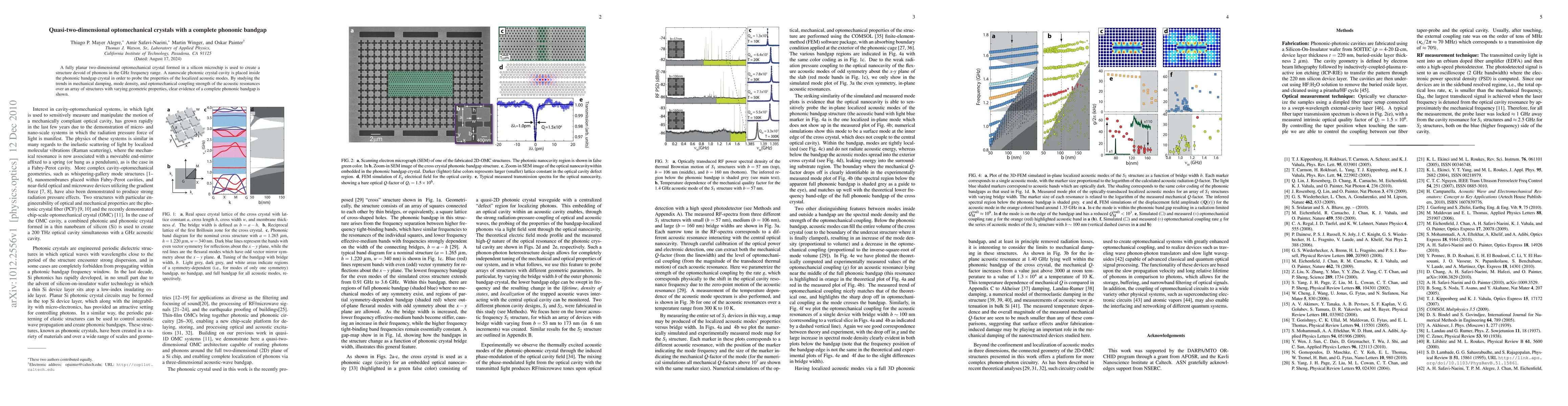 This research demonstrates a fully planar two-dimensional optomechanical crystal in a silicon microchip, showing a complete phononic bandgap in the GHz range. The study reveals the properties of localized acoustic modes within a nanoscale photonic crystal cavity, confirming the existence of the phononic bandgap through analysis of mechanical damping, mode density, and optomechanical coupling strength.