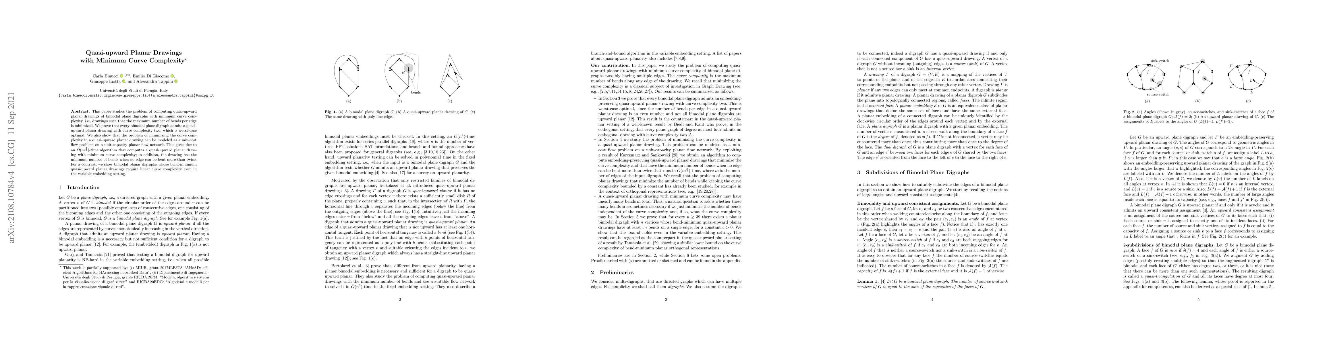 This paper studies the problem of computing quasi-upward planar drawings of bimodal plane digraphs with minimum curve complexity, i.e., drawings such that the maximum number of bends per edge is minimized. We prove that every bimodal plane digraph admits a quasi-upward planar drawing with curve complexity two, which is worst-case optimal. We also show that the problem of minimizing the curve complexity in a quasi-upward planar drawing can be modeled as a min-cost flow problem on a unit-capacity planar flow network. This gives rise to an $\tilde{O}(m^\frac{4}{3})$-time algorithm that computes a quasi-upward planar drawing with minimum curve complexity; in addition, the drawing has the minimum number of bends when no edge can be bent more than twice. For a contrast, we show bimodal planar digraphs whose bend-minimum quasi-upward planar drawings require linear curve complexity even in the variable embedding setting.