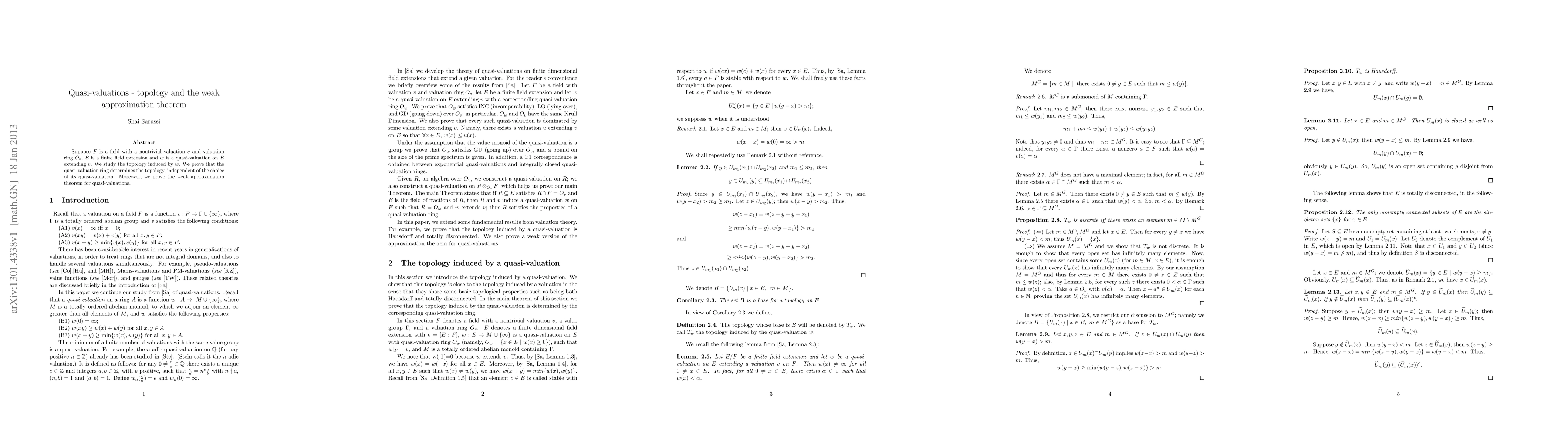This paper investigates the topology induced by quasi-valuations on field extensions and demonstrates that the quasi-valuation ring determines this topology uniquely. It also establishes the weak approximation theorem for quasi-valuations.